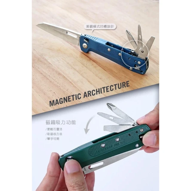 Leatherman美國 FREE K2 多功能工具折刀(平刃/彩色握柄系列) 3色 LE 83289 綠野山房