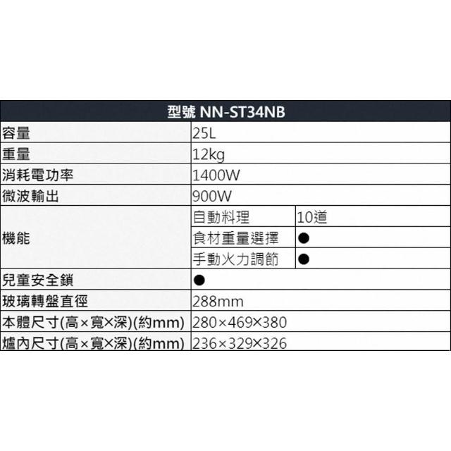 Panasonic 國際牌Panasonic國際牌 25L微電腦微波爐 NN-ST34NB