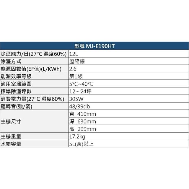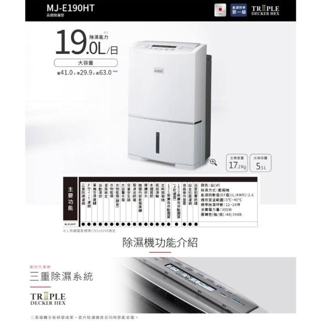 MITSUBISHI 三菱電機19L 能效三級三重除濕系統除濕機 MJ-E190HT-TW