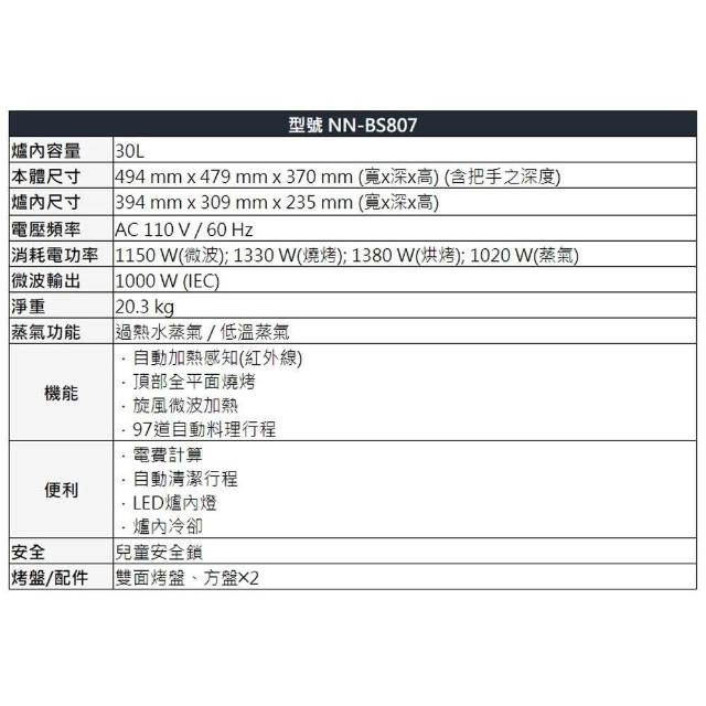 Panasonic 國際牌Panasonic國際30L蒸烘烤微波爐 NN-BS807