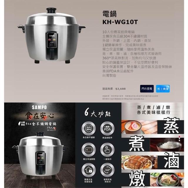 SAMPO 聲寶SAMPO聲寶 10人份304全不鏽鋼電鍋 KH-WG10T