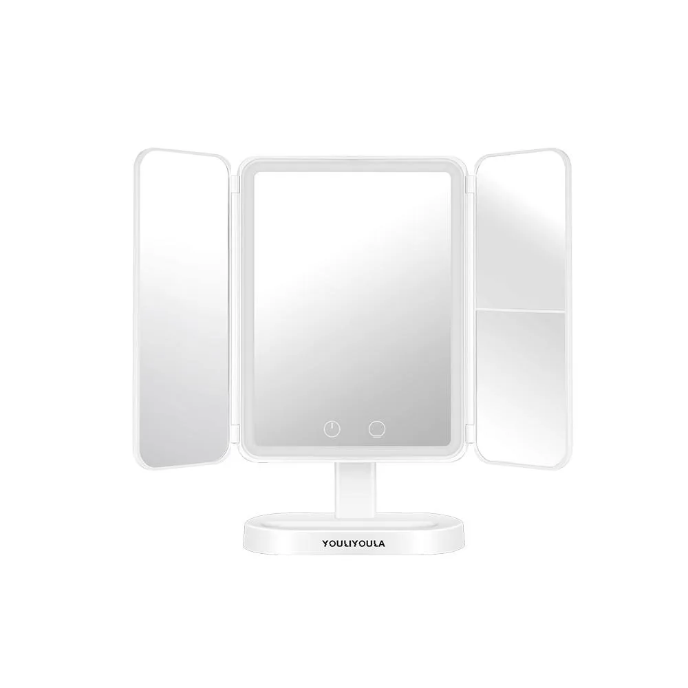 化妆镜立镜 三色光發光補光無極調光梳妝鏡 女生化妝美妝鏡子 桌上折疊鏡子 放大造型化妝鏡修容鏡 美妝LED鏡子