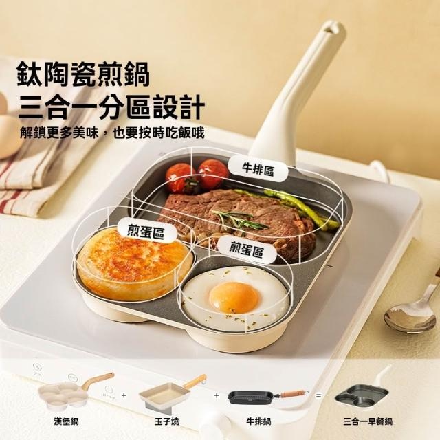 早餐鍋 雞蛋漢堡鍋 煎鍋 牛排鍋 煎蛋鍋 多格平底鍋 三合一煎鍋 多功能 麥飯石 不粘鍋
