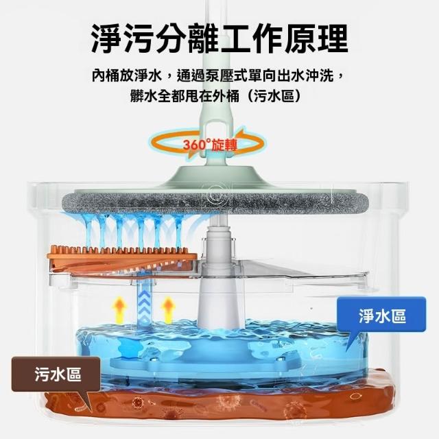 懶人拖把組 ( 淨汙分離免手洗 懶人拖 免洗拖把 旋轉拖把 省水牆角清潔專用 平板拖把 拖把桿)