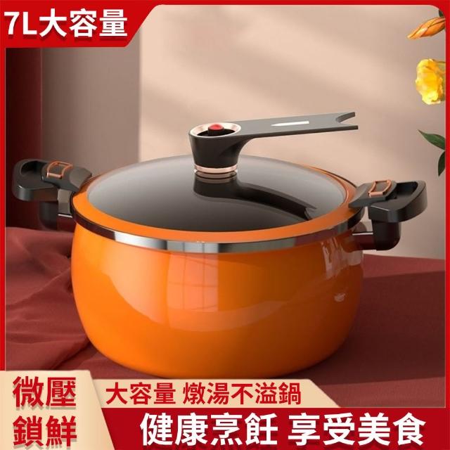 高壓鍋 壓力鍋 不粘鍋 煲湯燉肉 湯鍋 琺瑯微壓鍋 燉煮鍋 南瓜鍋 燃氣通用鍋 7L大容量 雙耳推拉式開合手柄