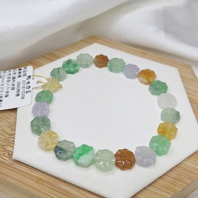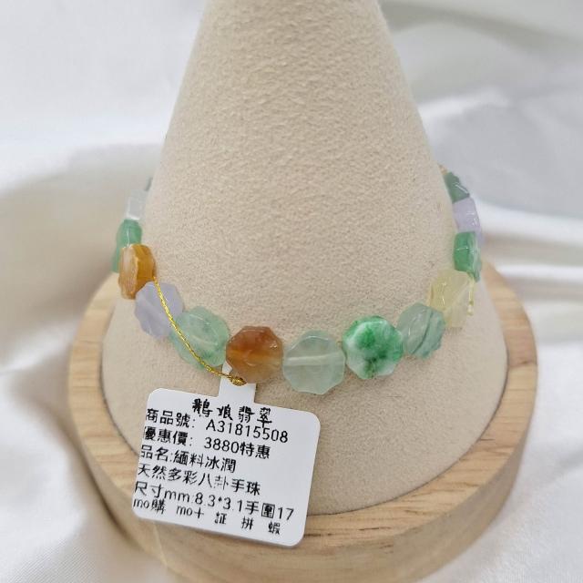 鵝娘翡翠天然翡翠 緬料冰潤多彩八卦手珠 手串/鵝娘天然翡翠/A31815508