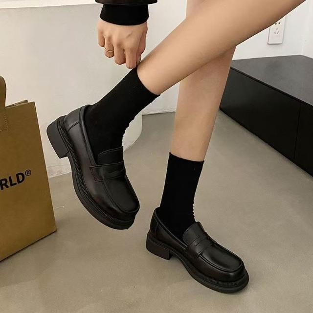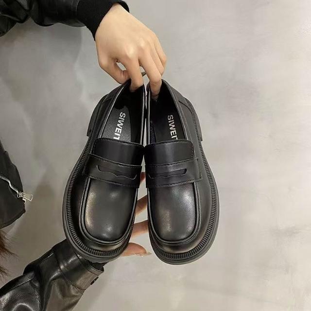 (35-42碼)大碼低跟皮鞋 大碼皮鞋 日系小皮鞋 福樂鞋 一腳凳皮鞋 好穿脫皮鞋 底軟 綁帶皮鞋