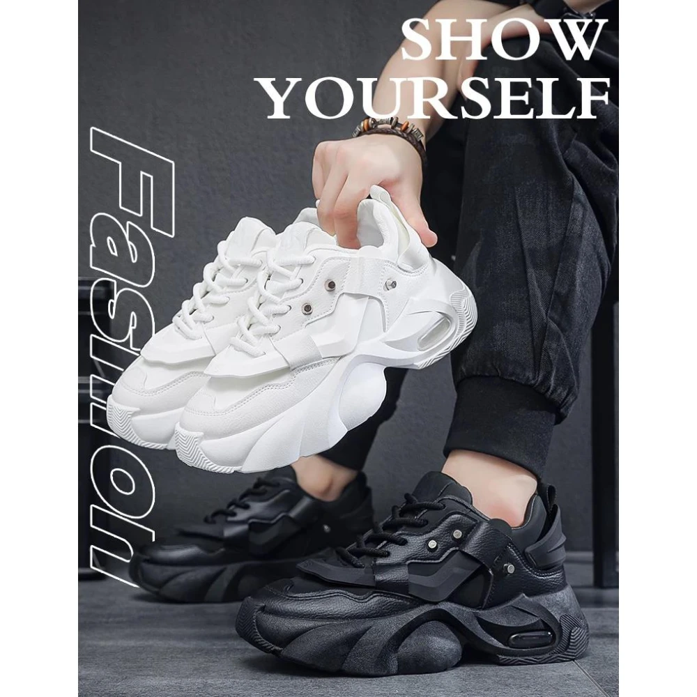 大碼男鞋 黑武士老爹鞋 46碼 黑色工作鞋 休閒鞋 戶外運動鞋 增高5公分 時尚男生鞋子