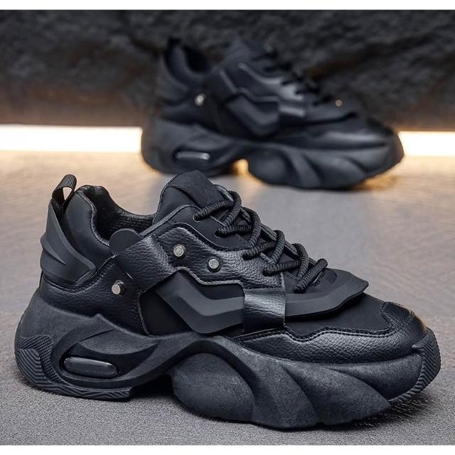 大碼男鞋 黑武士老爹鞋 46碼 黑色工作鞋 休閒鞋 戶外運動鞋 增高5公分 時尚男生鞋子