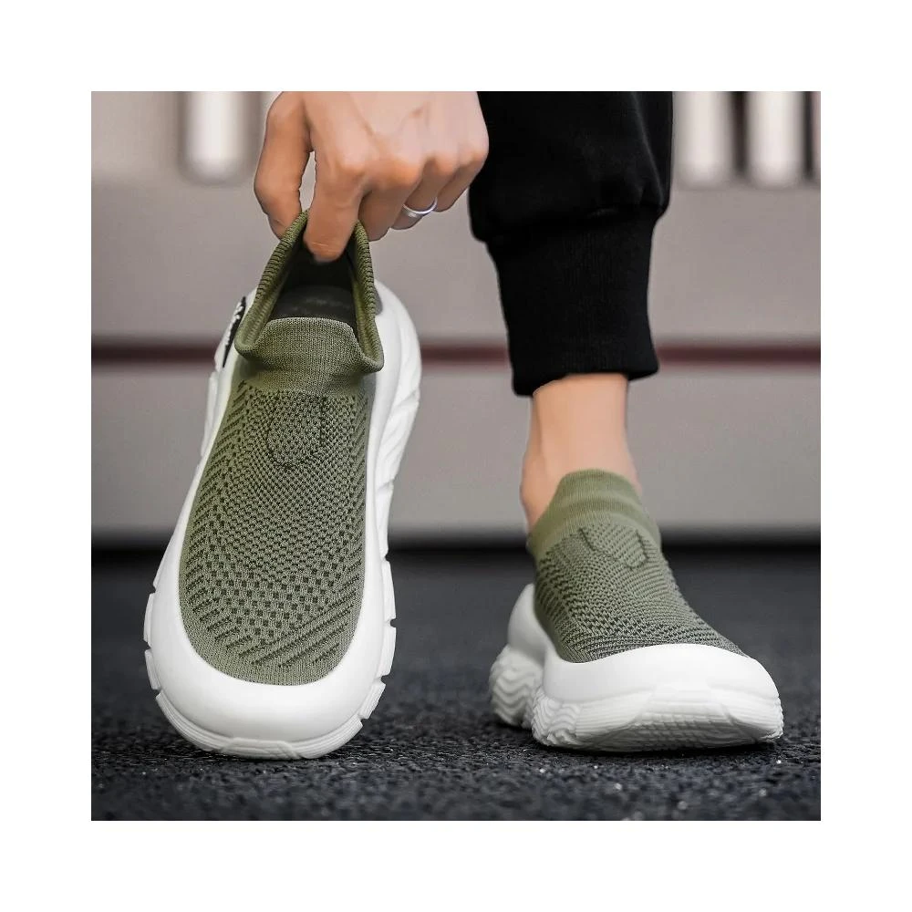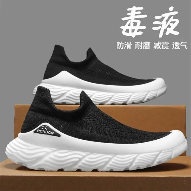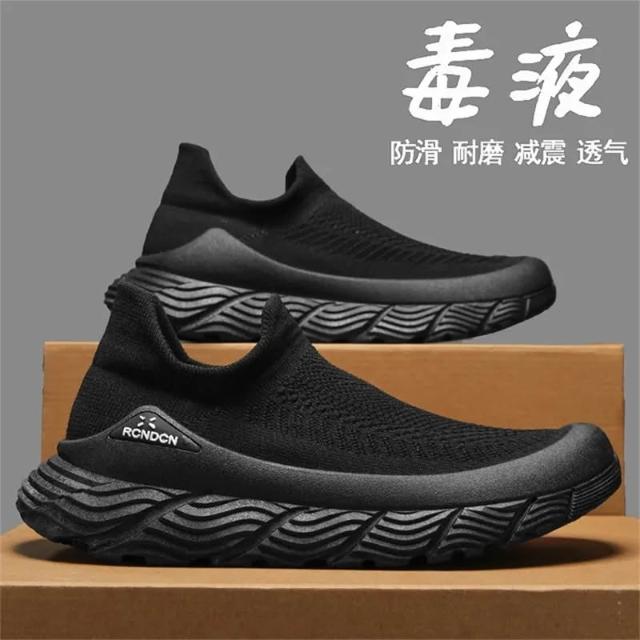 久站鞋 懶人鞋 赤足鞋 工作鞋 男鞋夏季透氣網面懶人一腳蹬軟底飛織襪鞋男厚底輕便運動休閒鞋