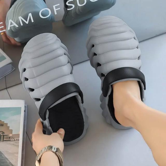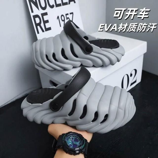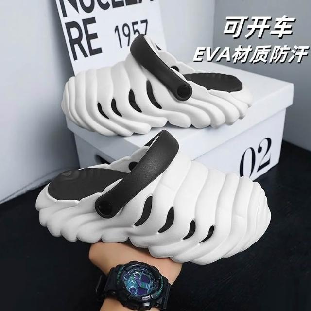包頭拖鞋 懶人鞋男 洞洞鞋 布希鞋 赤足鞋 防水鞋 廚師鞋超厚增高包頭EVA洞洞鞋男夏日戶外穿耐磨防水一體可開車潮男涼拖