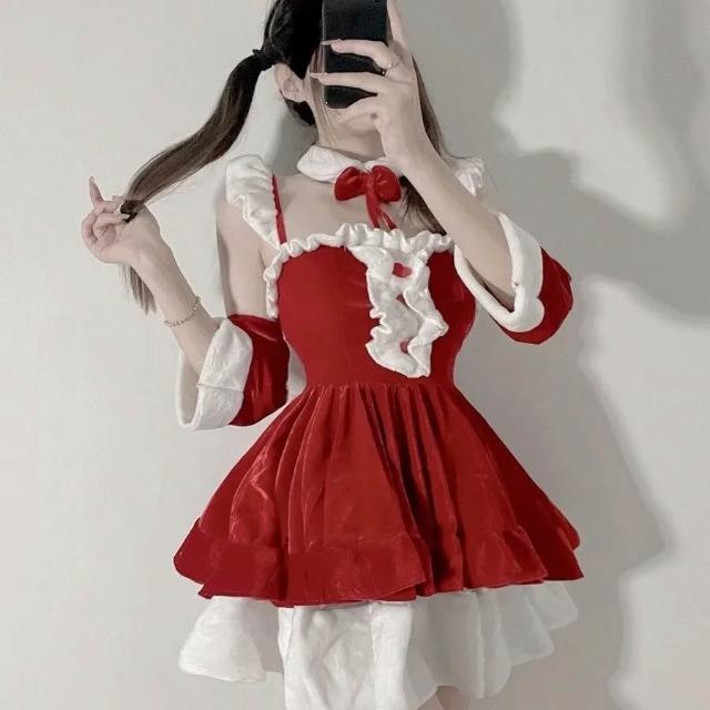 聖誕洋裝甜辣妹Lolita氛圍套裝蘿麗塔新年紅色衣服跨年戰袍兔女