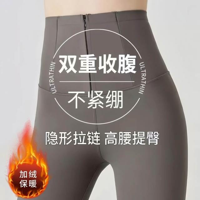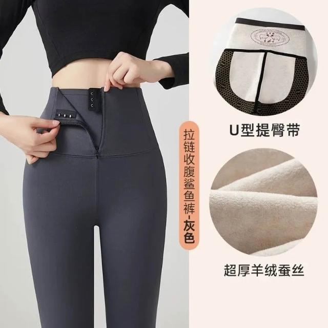 高腰拉鍊排扣鯊魚褲秋冬款女外穿收腹提臀瑜珈新款加絨女士打底褲