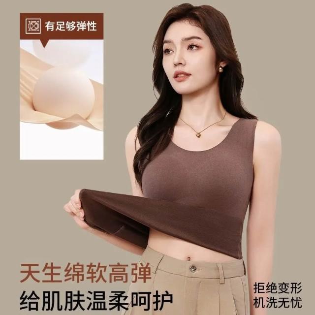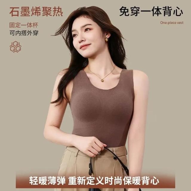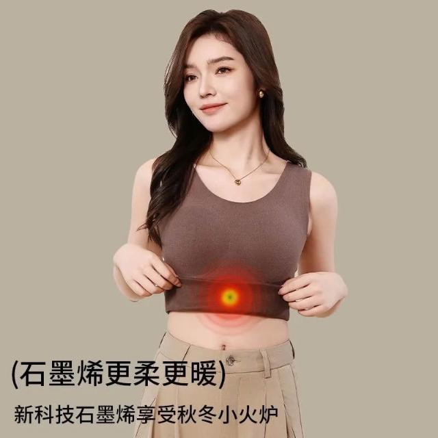 石墨烯保暖背心女帶胸墊加厚女士無痕發熱加絨保暖打底秋冬季內衣