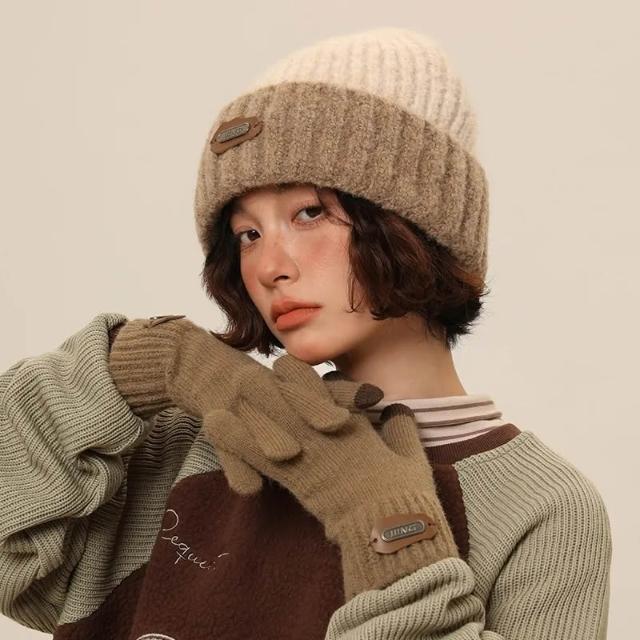 帽控 羊毛混紡毛線帽大頭圍男女秋冬季保暖冷帽拼色針織帽子