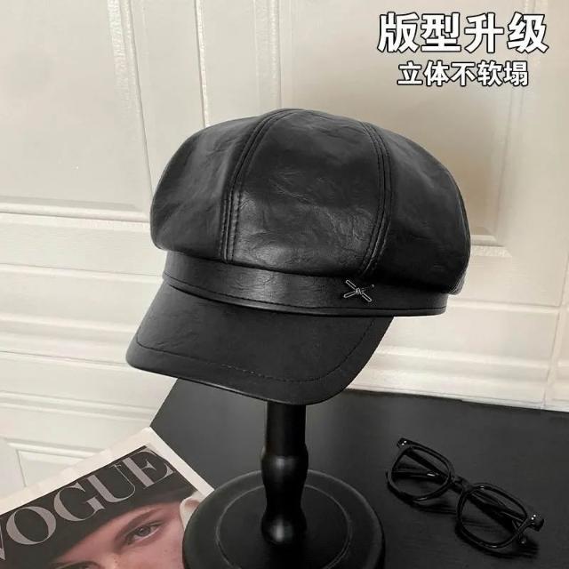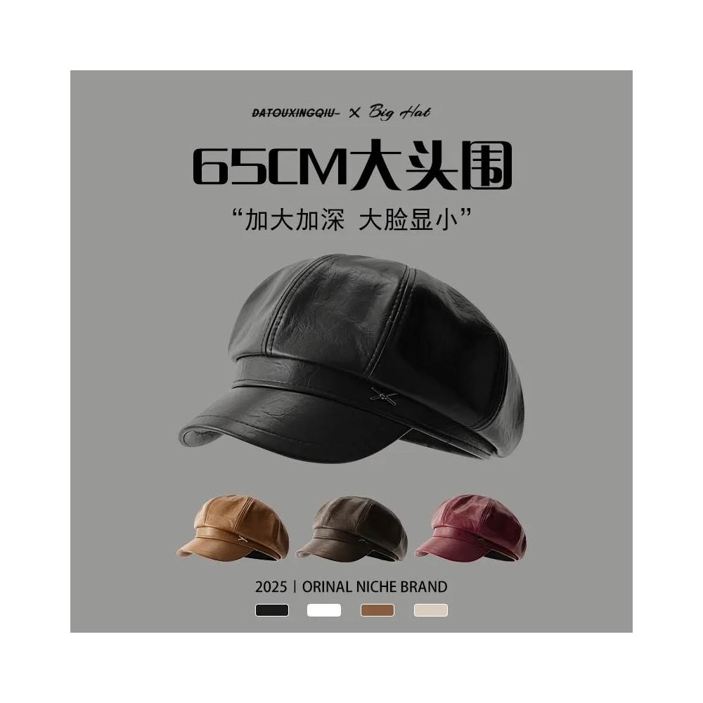 大頭圍八角帽英倫風復古PU皮質報童帽大帽簷顯臉小帽子女