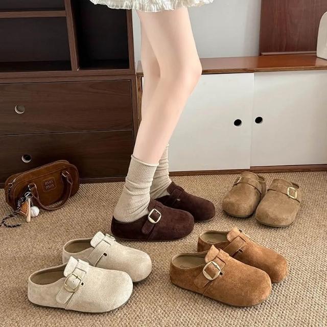 內增高厚底勃肯鞋一腳蹬包頭半拖鞋女外穿新秋季懶人博肯單鞋