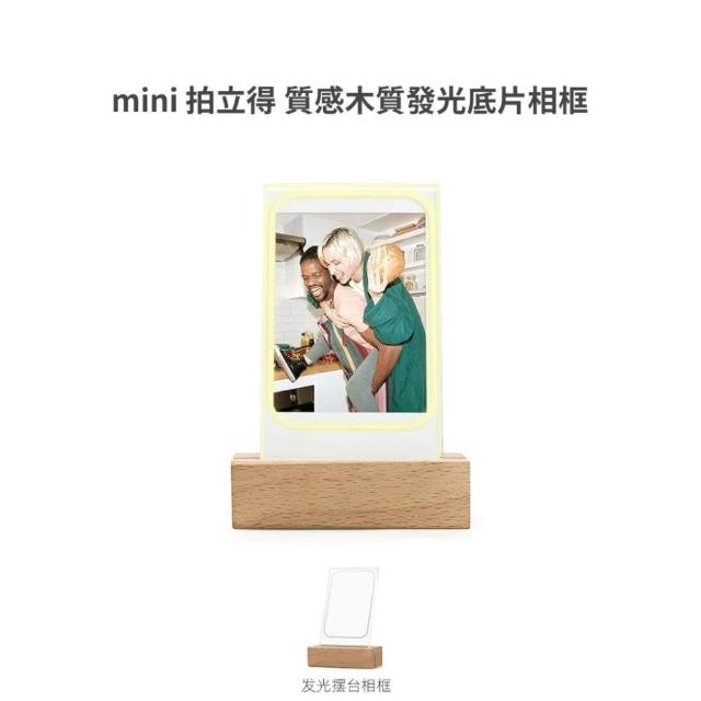 拍立得 instax mini 底片相框|會發光的木質站立相框|單張展示|適用 mini 底片相片|尺寸86×54m