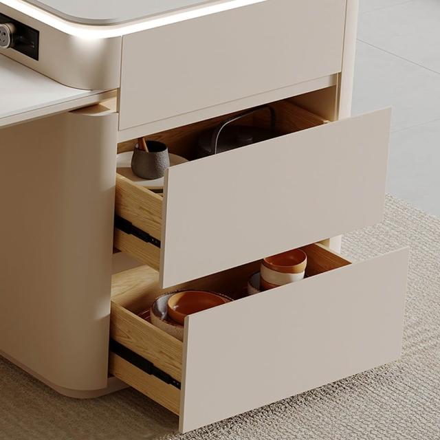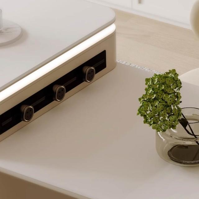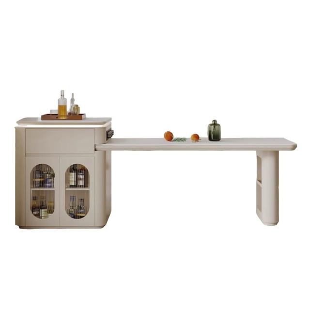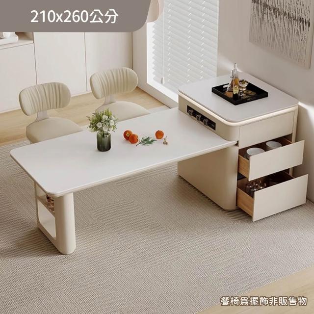 完美主義簡瀾 奶油風岩板可伸縮中島餐桌櫃210-260公分/附插座