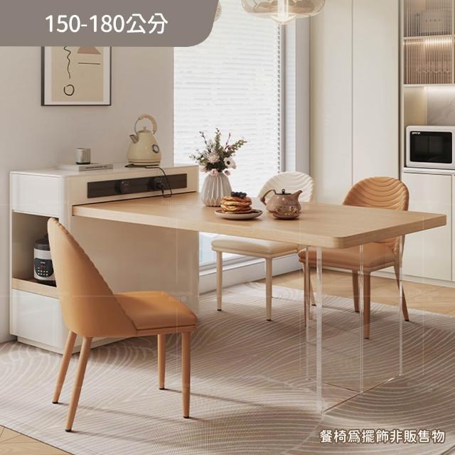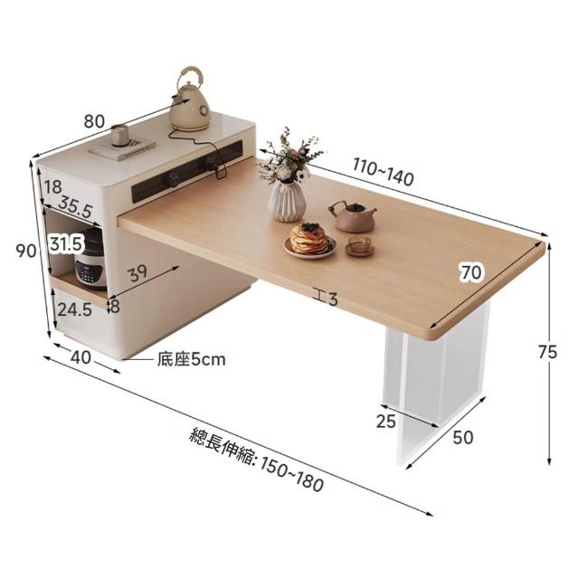 完美主義簡瀾 無印風伸縮懸浮中島桌櫃150-180公分/附插座