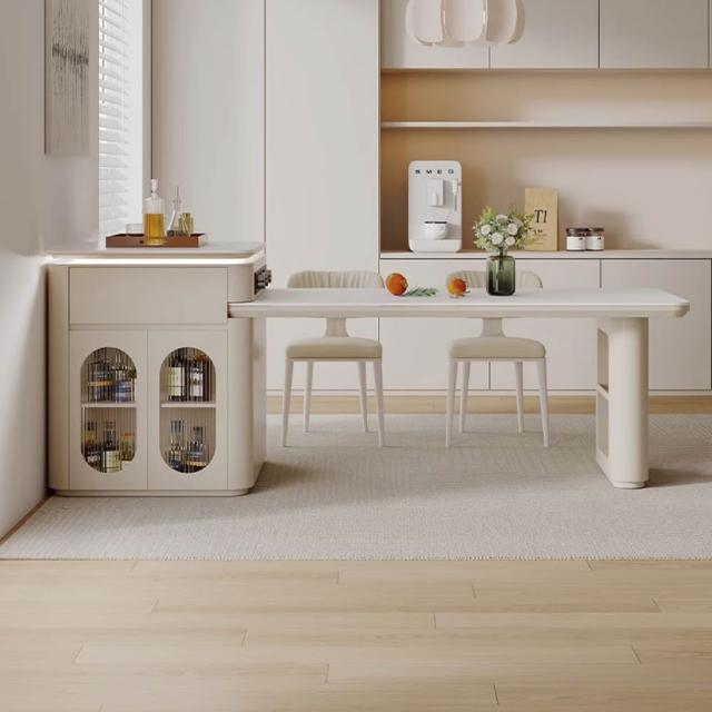 完美主義簡瀾 奶油風岩板可伸縮 中島餐桌櫃 170-220公分(台灣電壓插座)