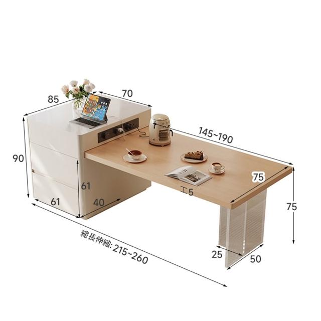 完美主義簡瀾 北歐風伸縮懸浮中島餐桌櫃215-260公分/附插座/台灣電壓
