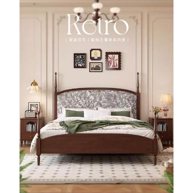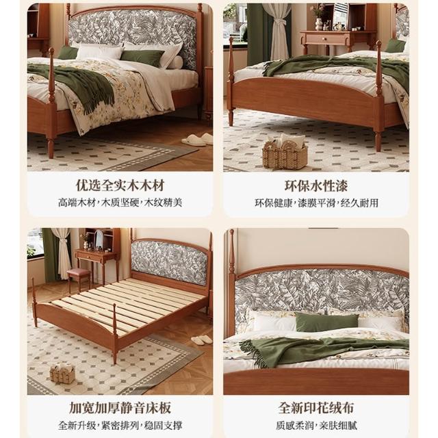 法式復古中古風實木床1.8米雙人床1.5米單人床2024新款婚床主臥床