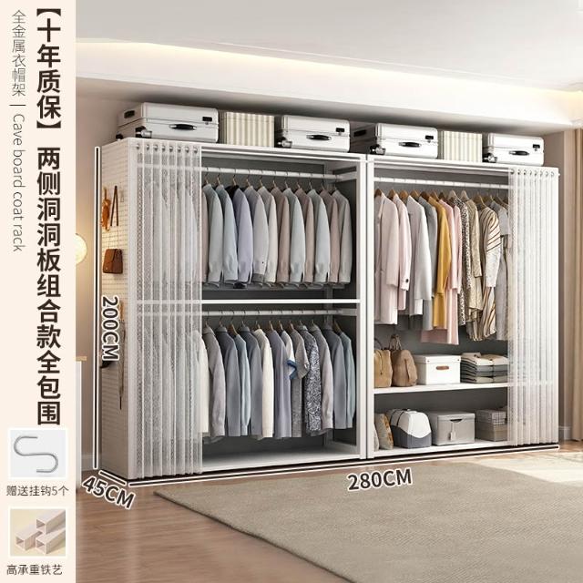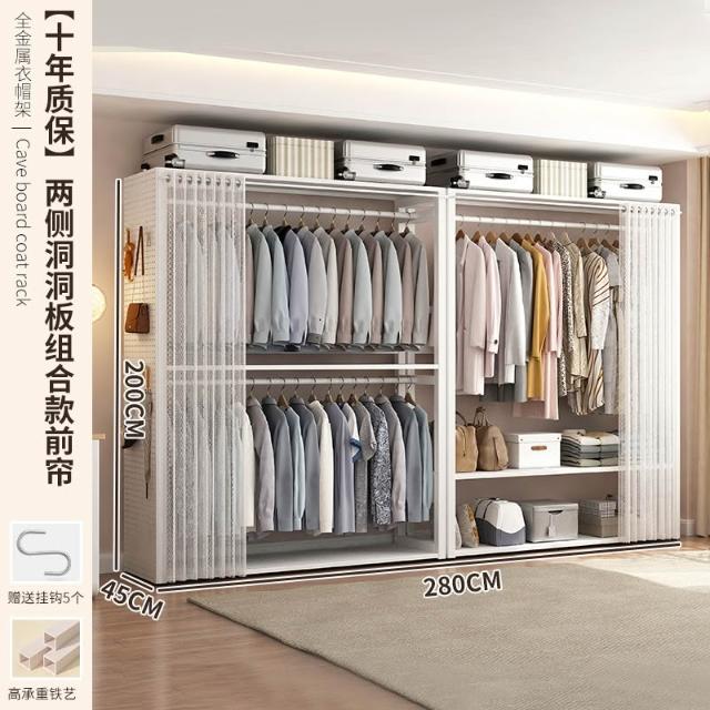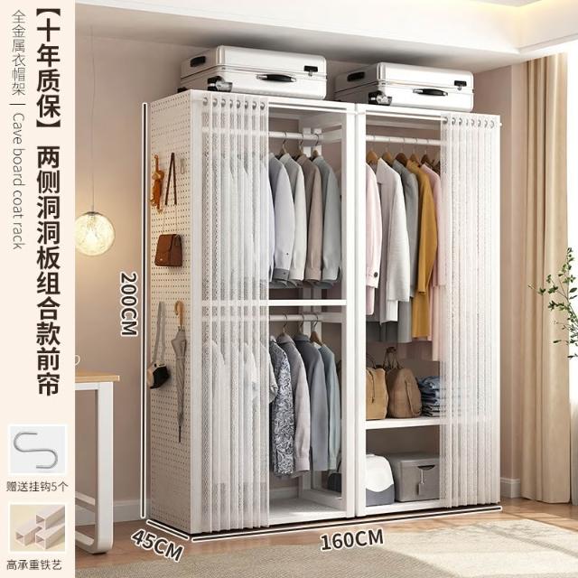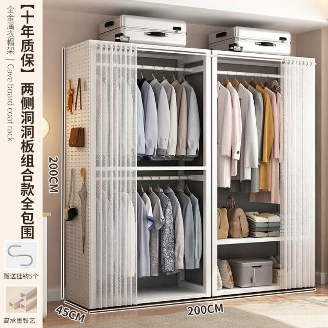 洞洞板衣櫃家用臥室出租房簡易組裝鐵藝衣櫃結實耐用收納架掛衣櫥