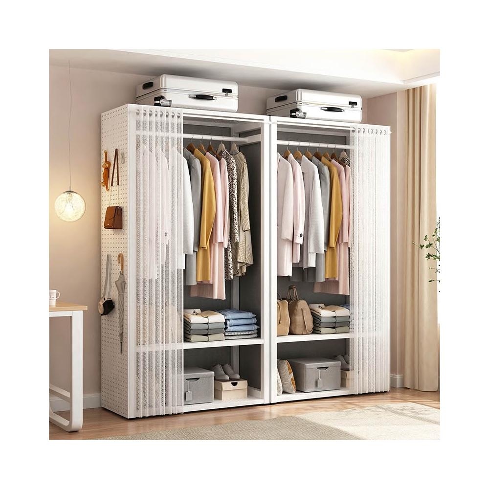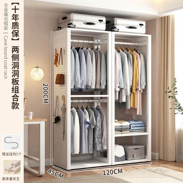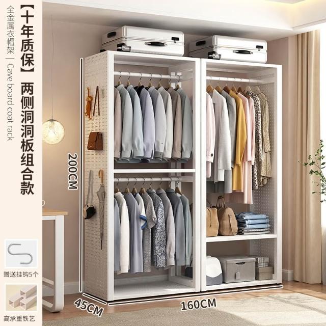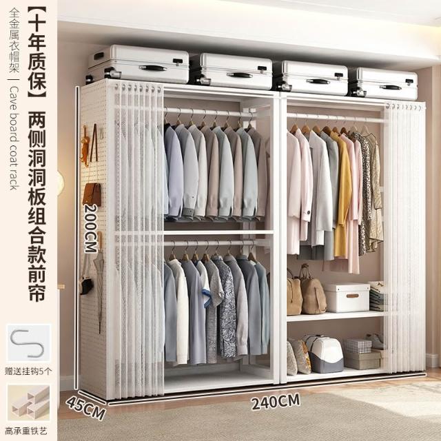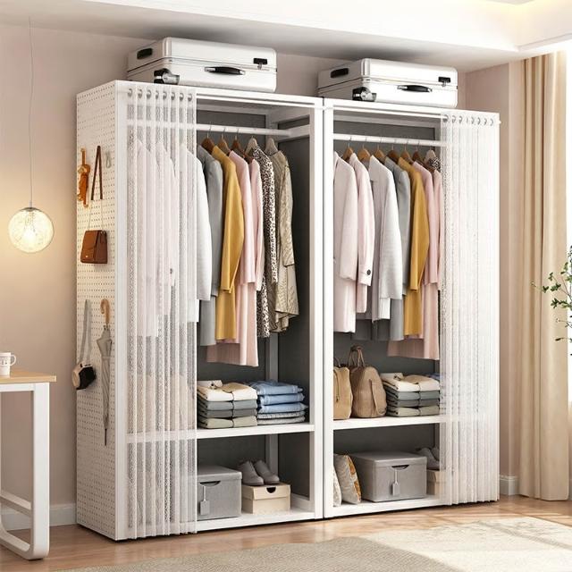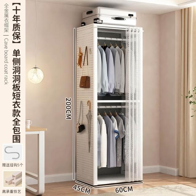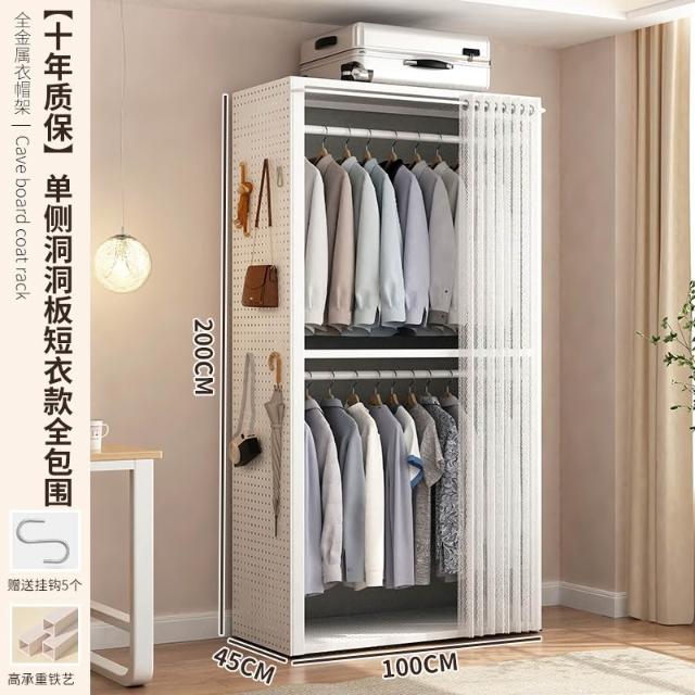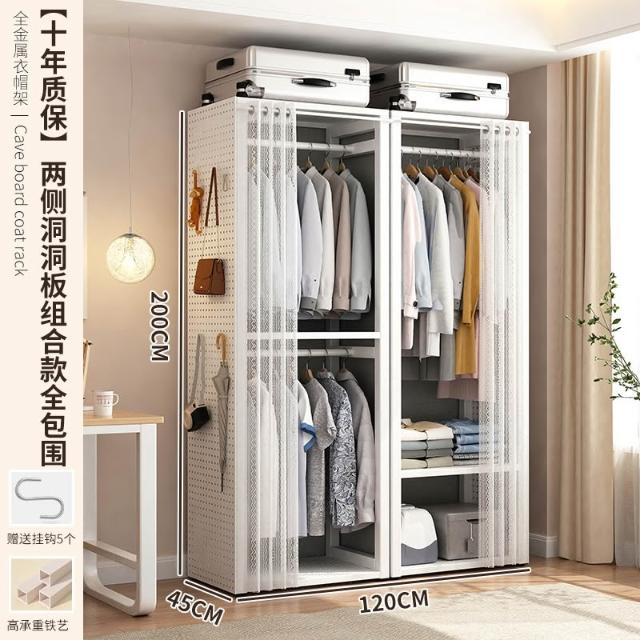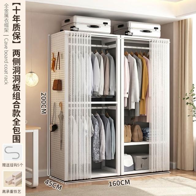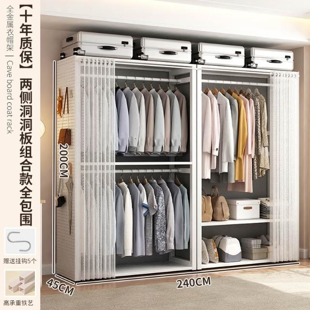 洞洞板衣櫃家用臥室出租房簡易組裝鐵藝衣櫃結實耐用收納架掛衣櫥