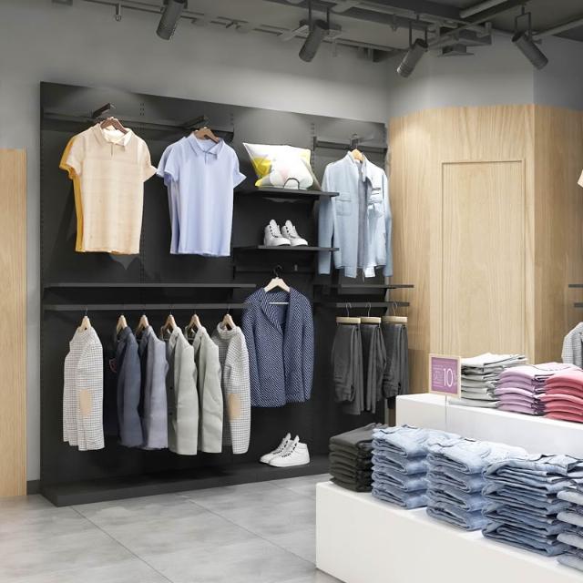 鐵藝背板服裝店展示架上牆店鋪落地式陳列架子牆壁掛衣架男裝貨架