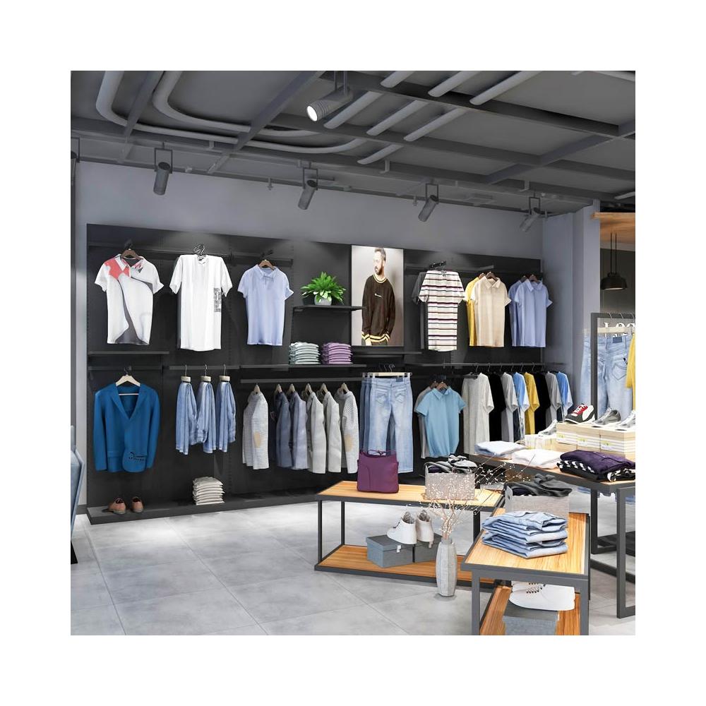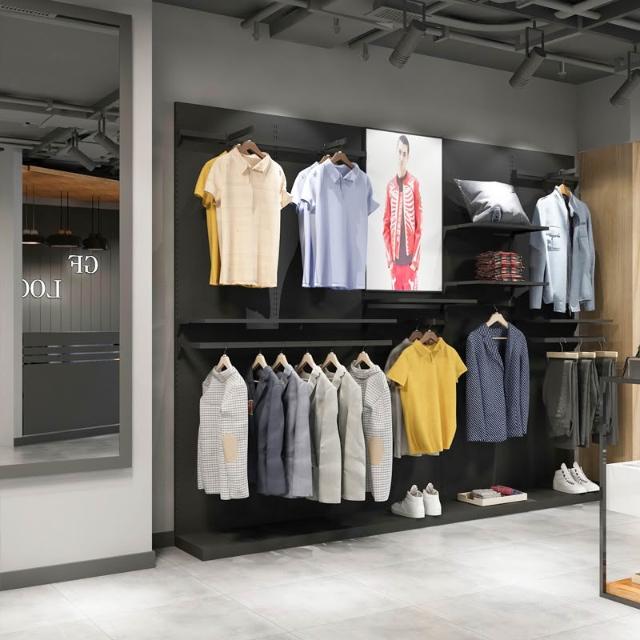 鐵藝背板服裝店展示架上牆店鋪落地式陳列架子牆壁掛衣架男裝貨架