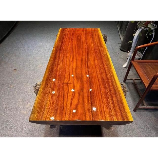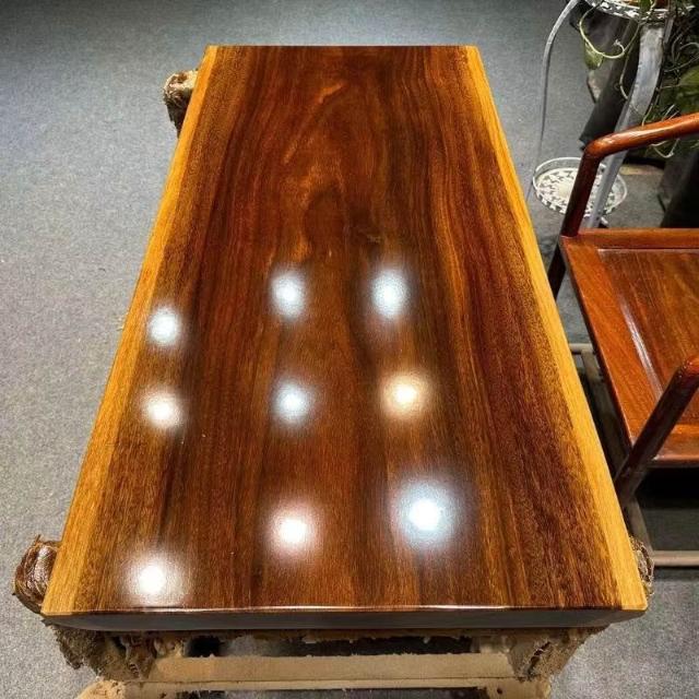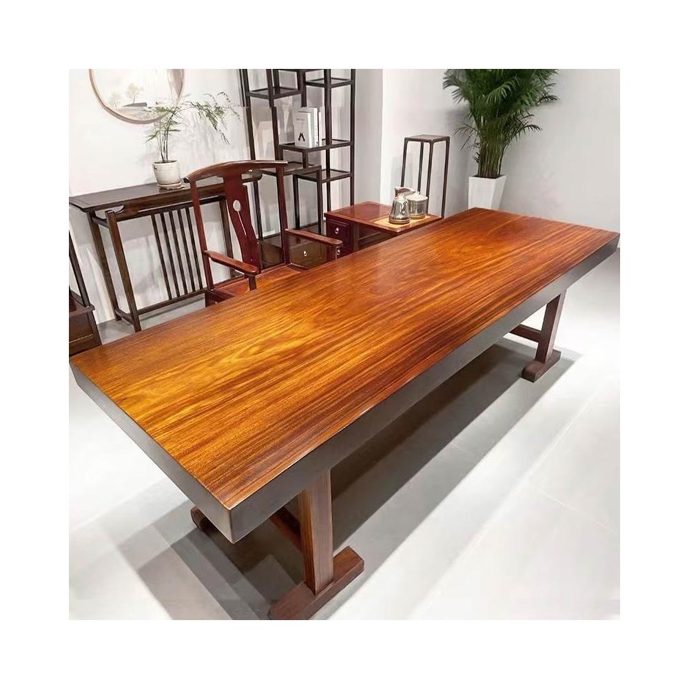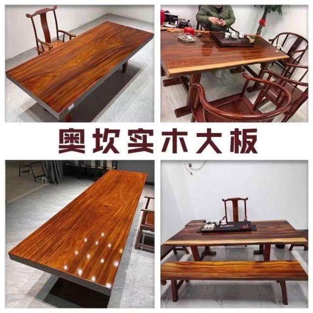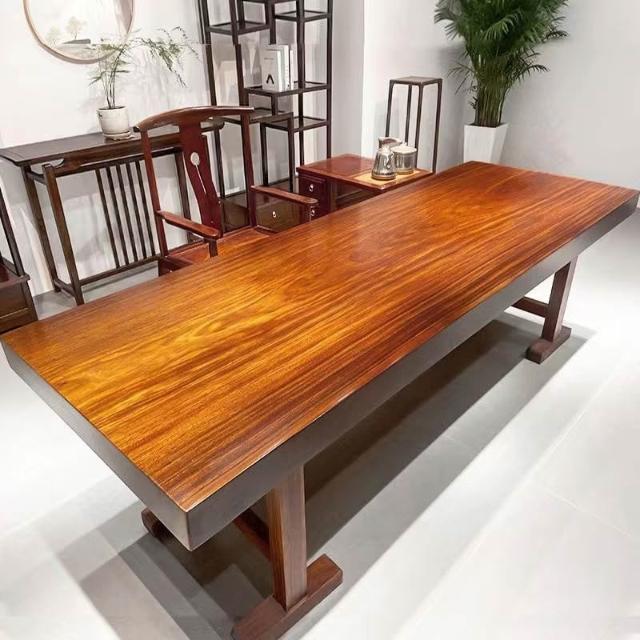 绿心檀奥坎实木大板桌茶桌老板办公会议桌餐桌现代简约整板木茶台