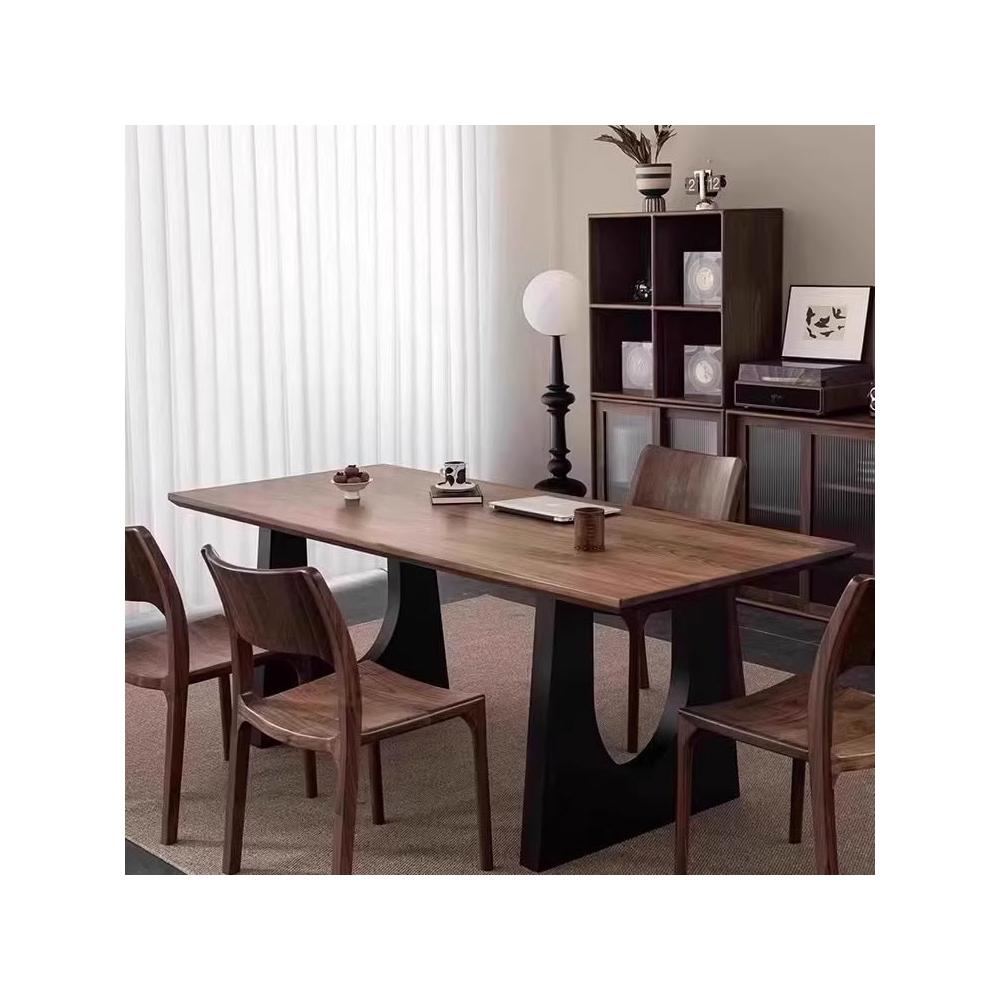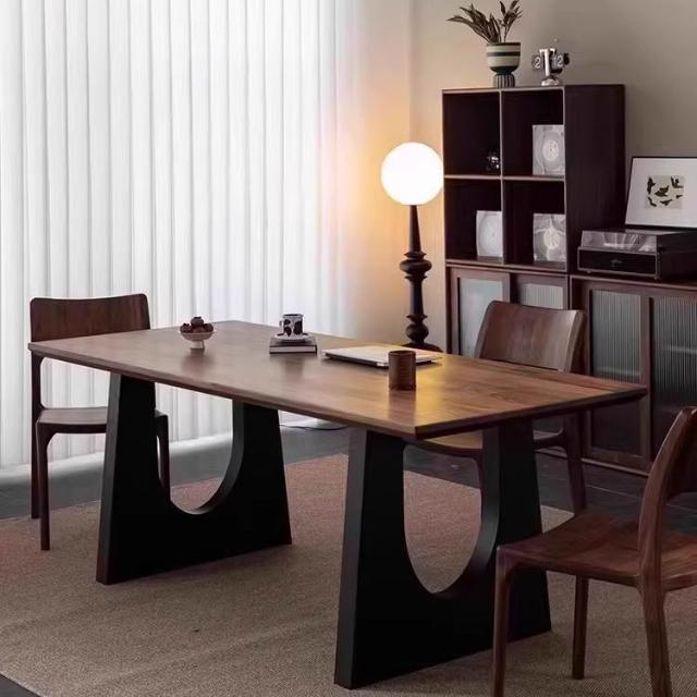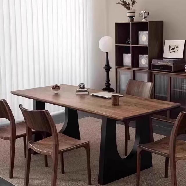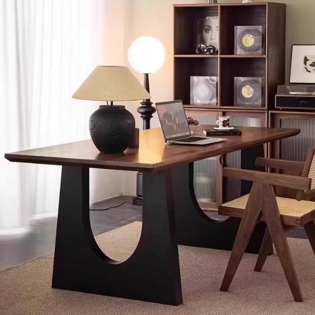 復古實木餐桌胡桃木色客廳大長書桌工作臺大板餐書桌一體辦公桌子