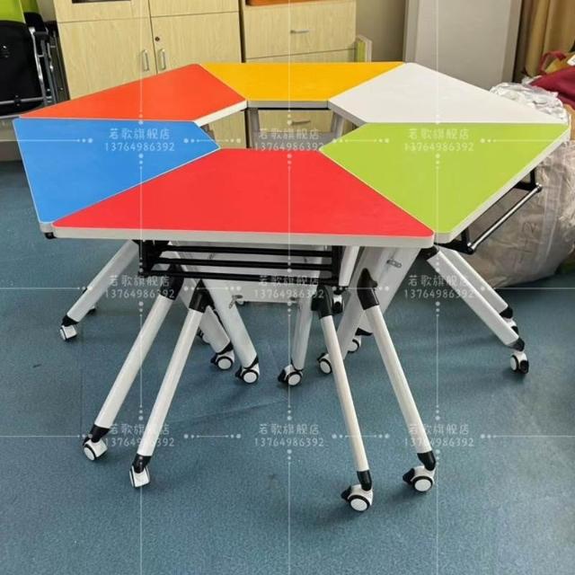 六邊形折疊培訓桌椅移動六角桌可拼接會議桌教育輔導班課桌實訓室