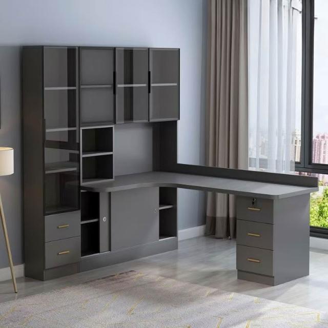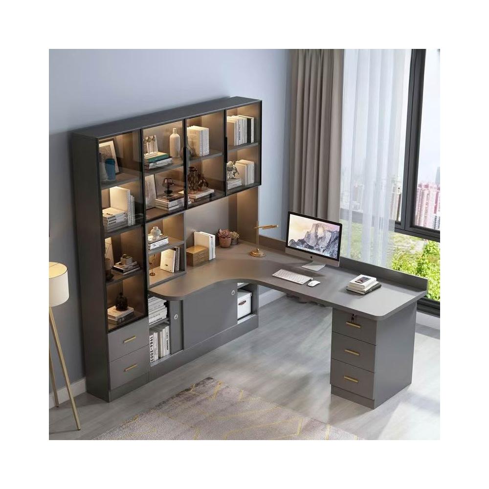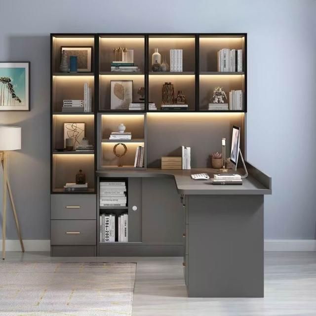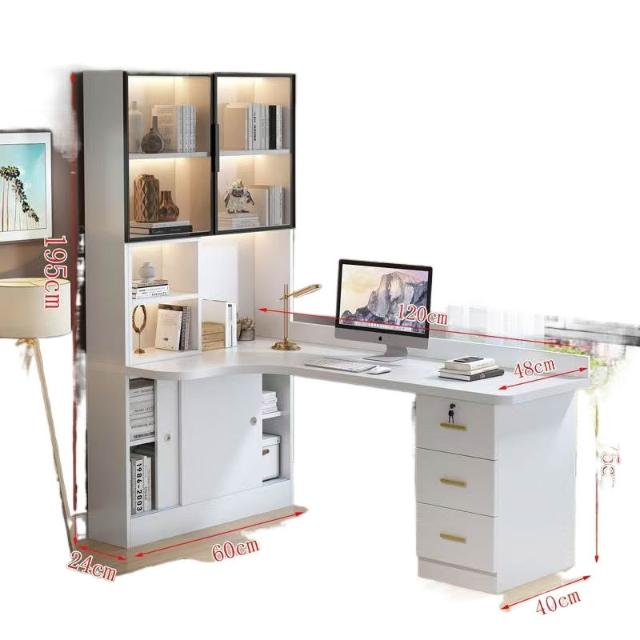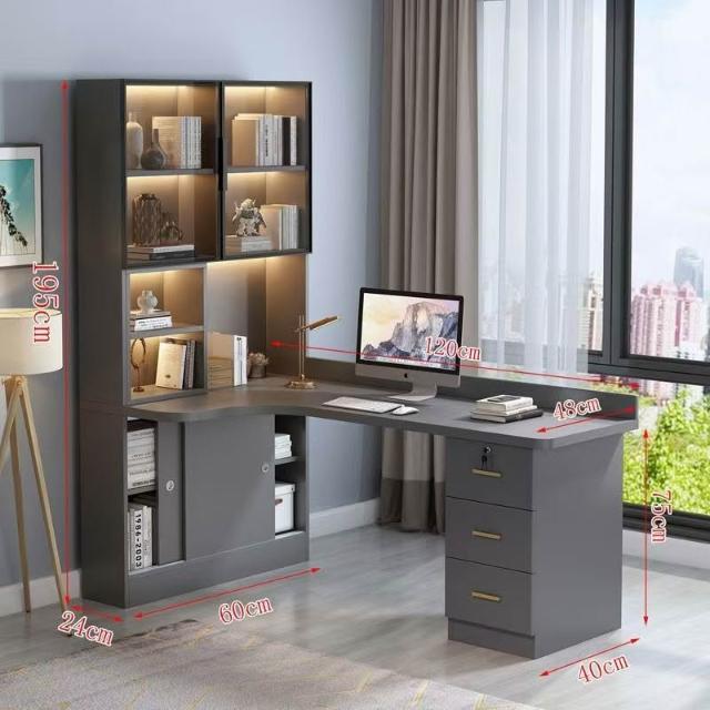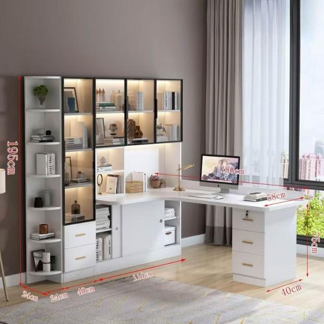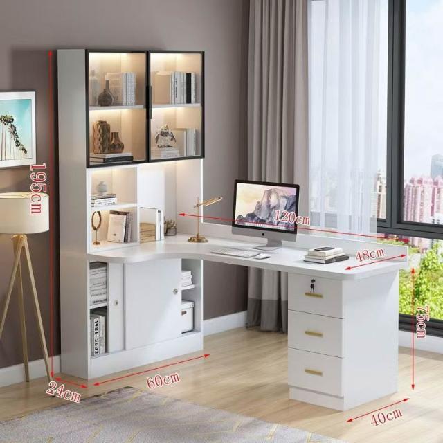 實木轉角電腦桌臺式書架書桌書櫃組合一體輕奢臥室家用寫字學習桌