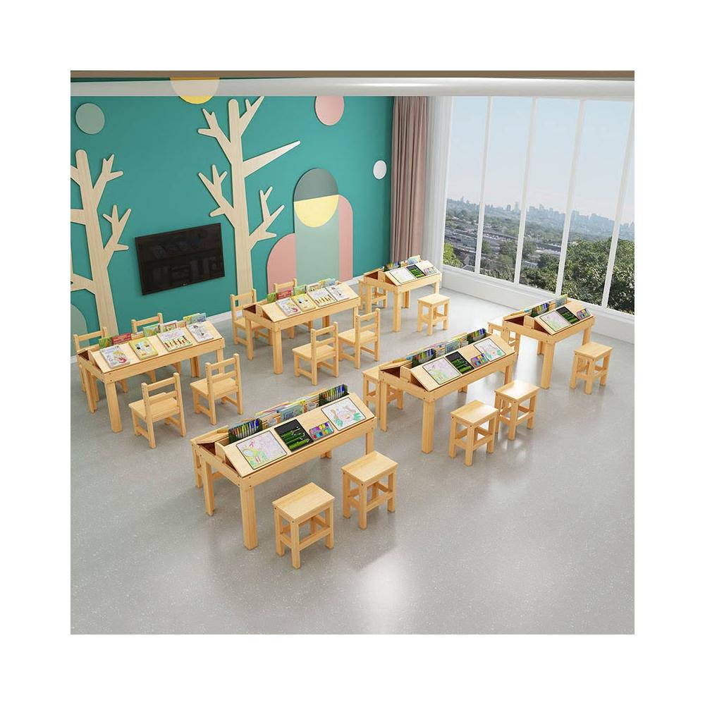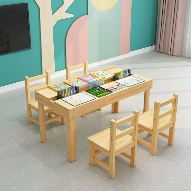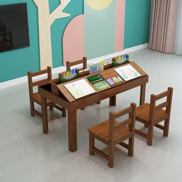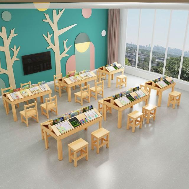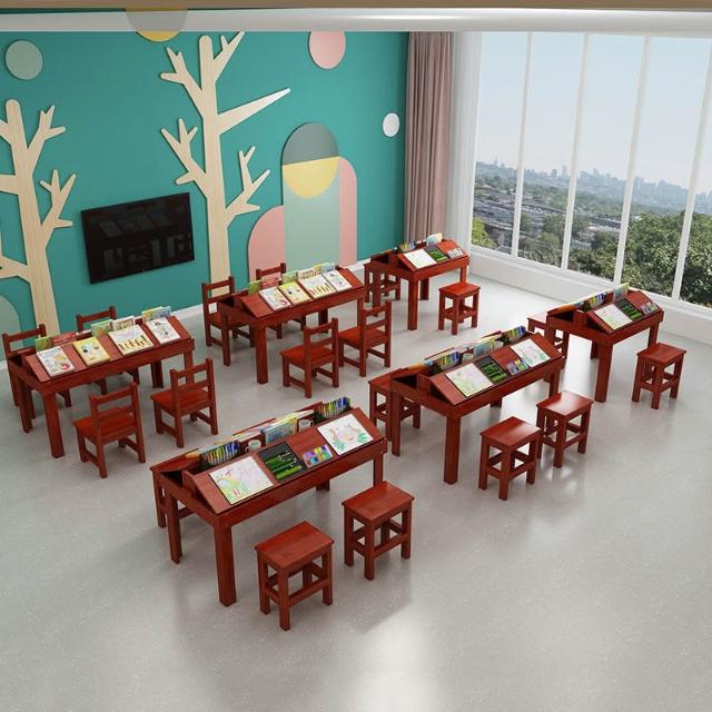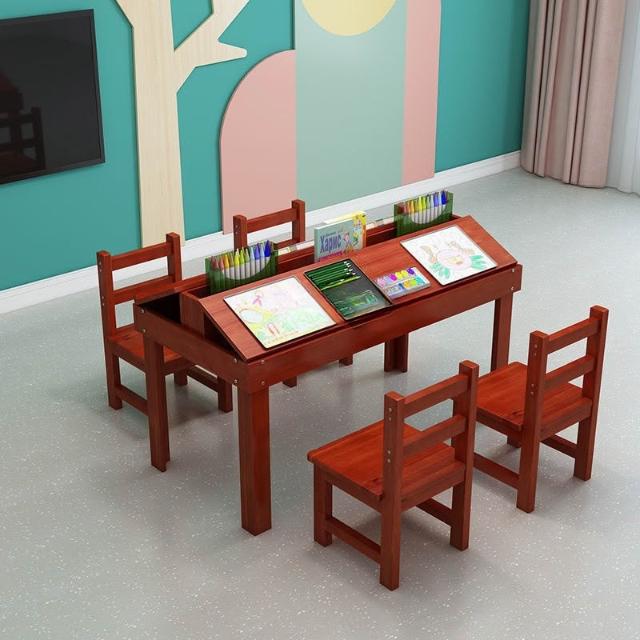 儿童图书馆阅览室阅读桌实木阅读桌幼儿园绘本馆阅览室阅读书桌椅