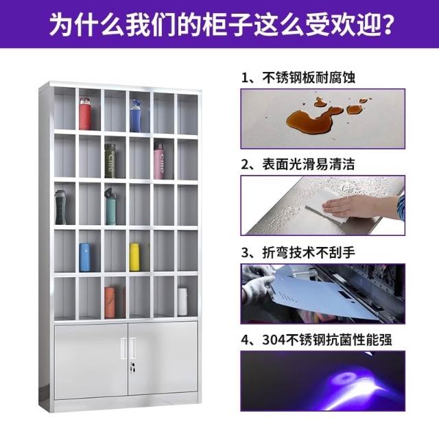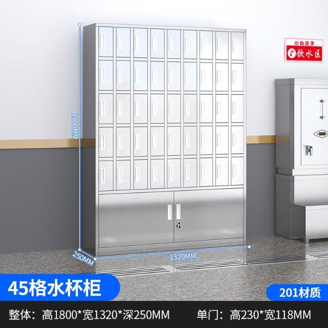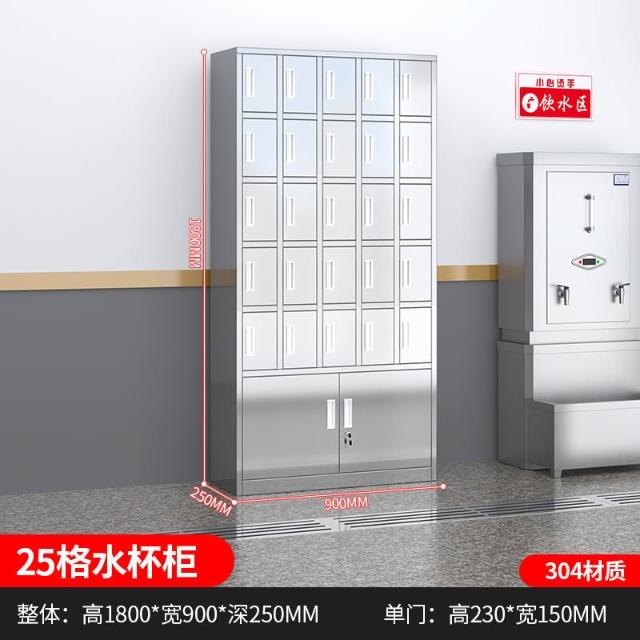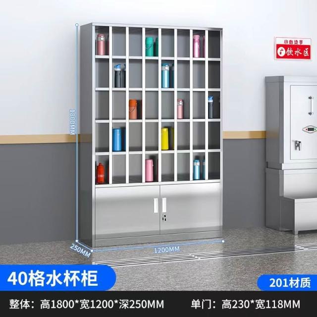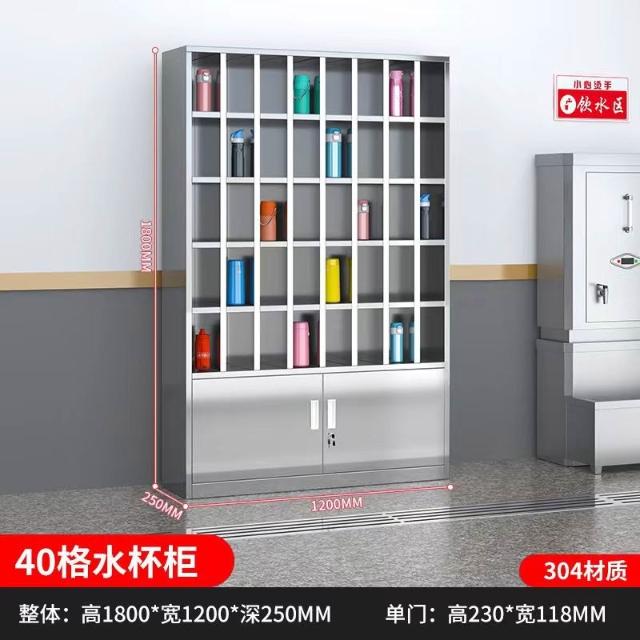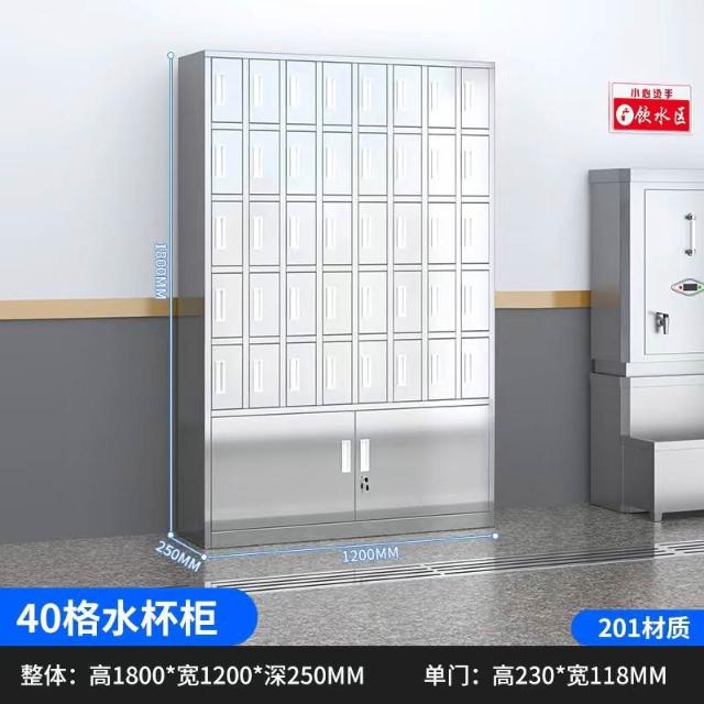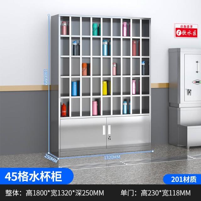 不锈钢水杯柜车间员工多格水杯放置柜学校茶水间茶杯带门存放柜