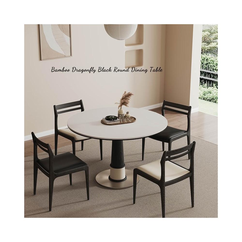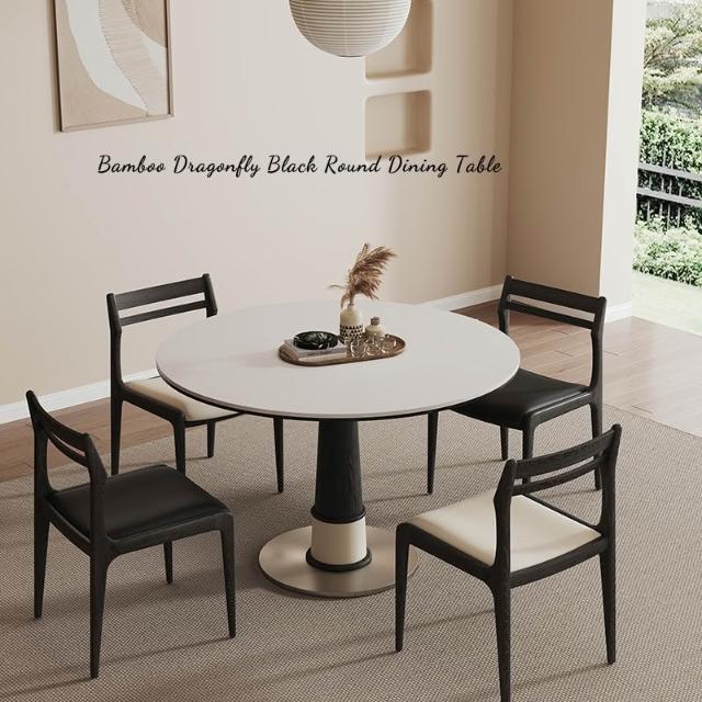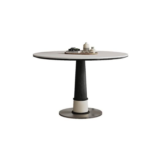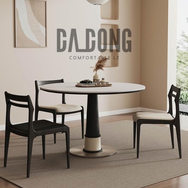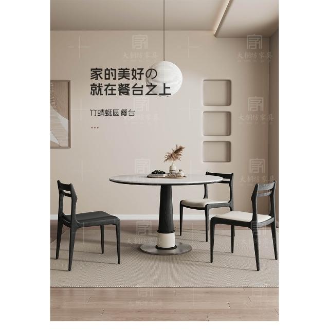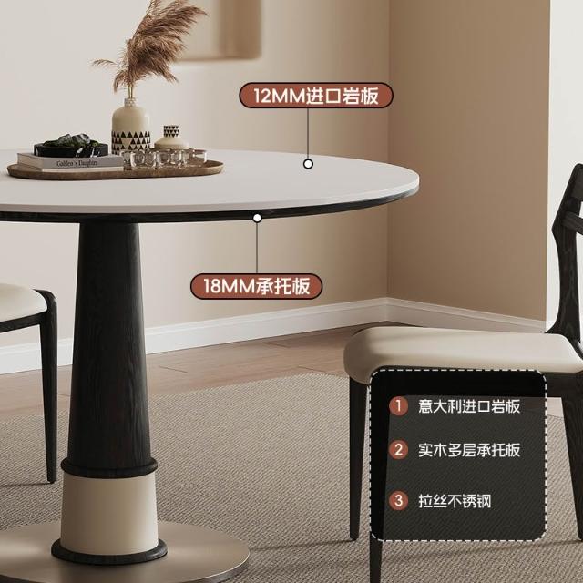 德利豐實木岩板圓桌法式復古風圓形餐桌家用小戶型飯桌餐廳客廳桌