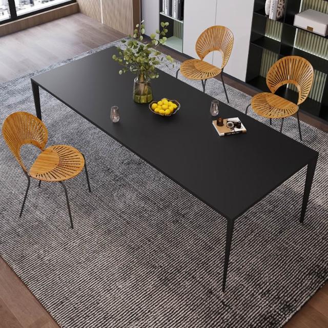德利豐岩板餐桌 純黑別墅長方形小戶型極簡鋁合金桌小紅書團購