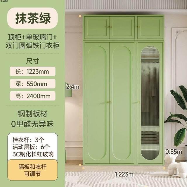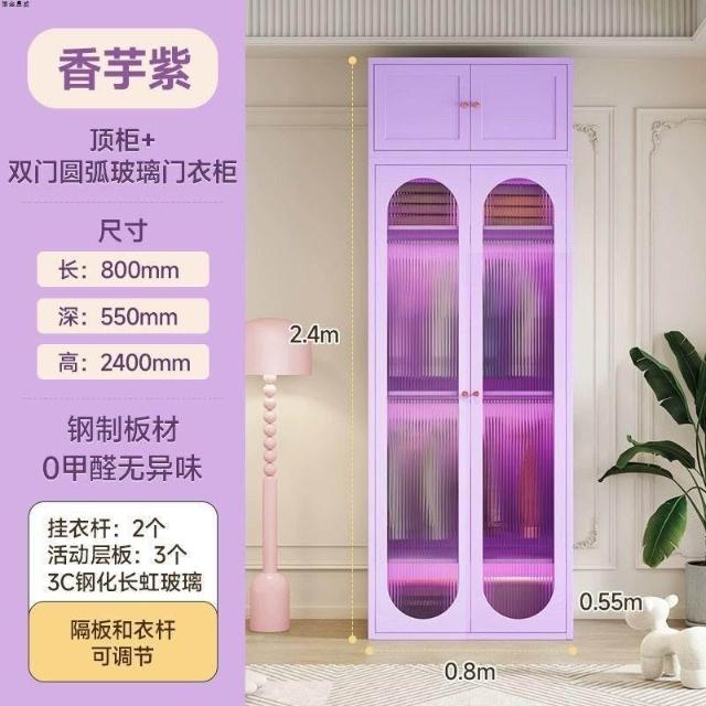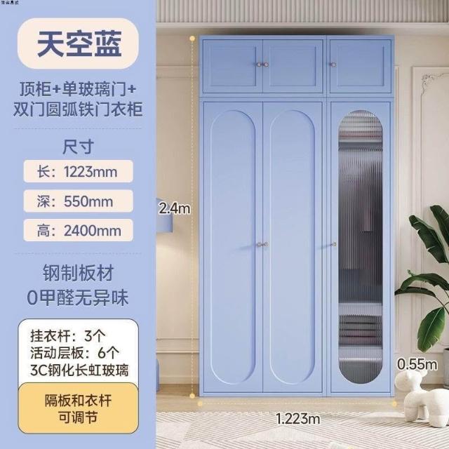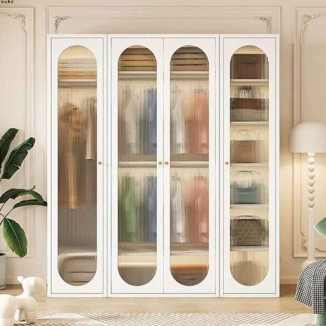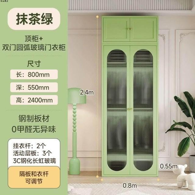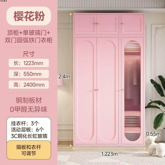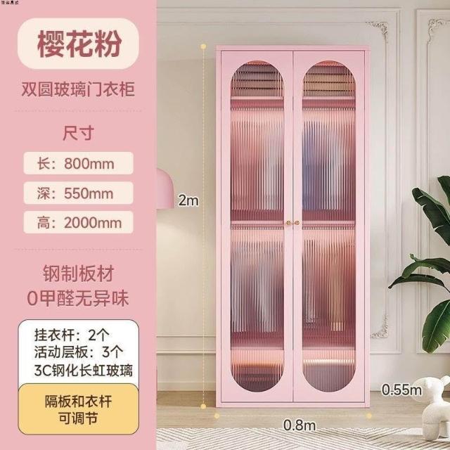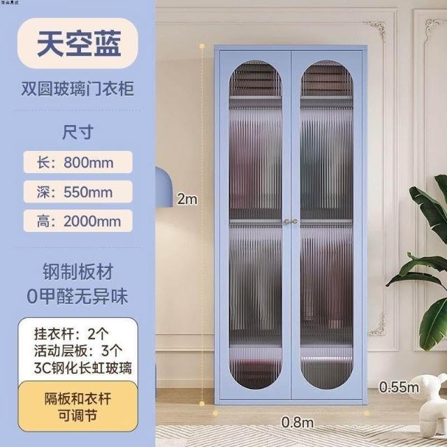 法式奶油風鋼制衣櫃家用長虹玻璃門臥室大容量儲物收納可組合衣櫃
