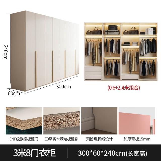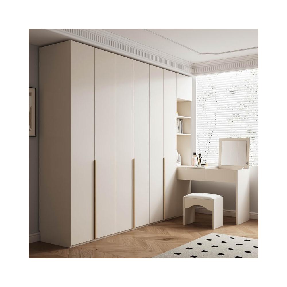 家居實木衣櫃奶油風簡約現代歐松板膚感書桌一體轉角櫃顆粒板包郵
