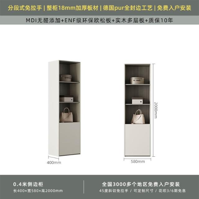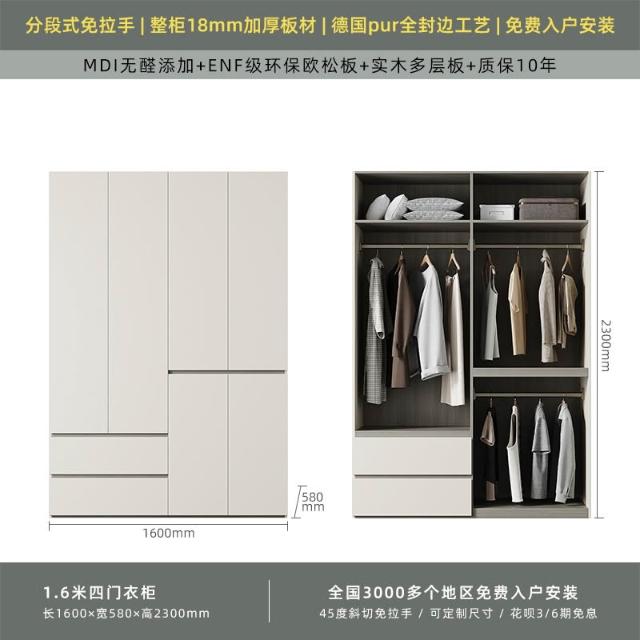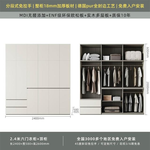 分段式衣櫃家用臥室奶油風一門到頂免拉手2024新款實木多層板衣櫥