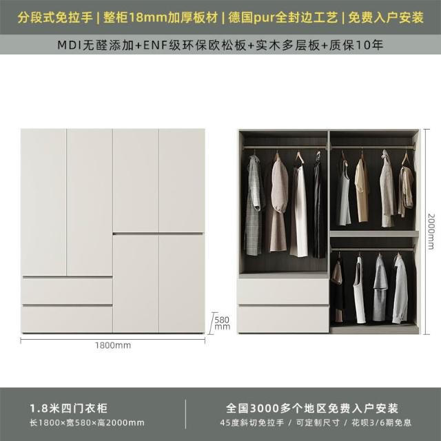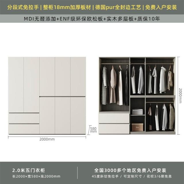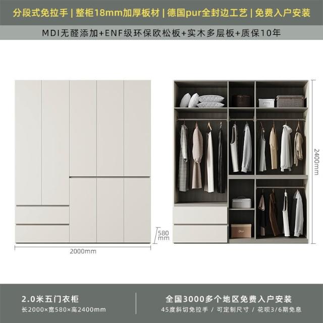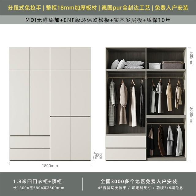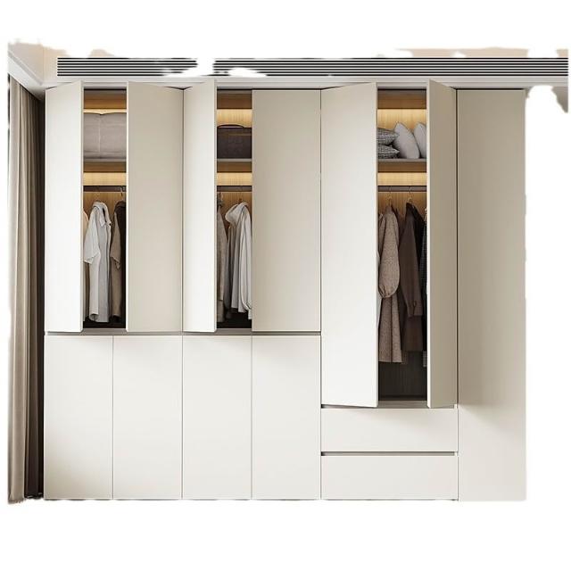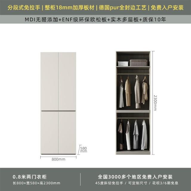 分段式衣櫃家用臥室奶油風一門到頂免拉手2024新款實木多層板衣櫥