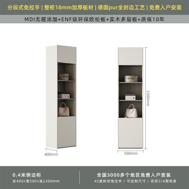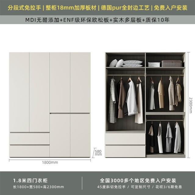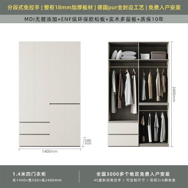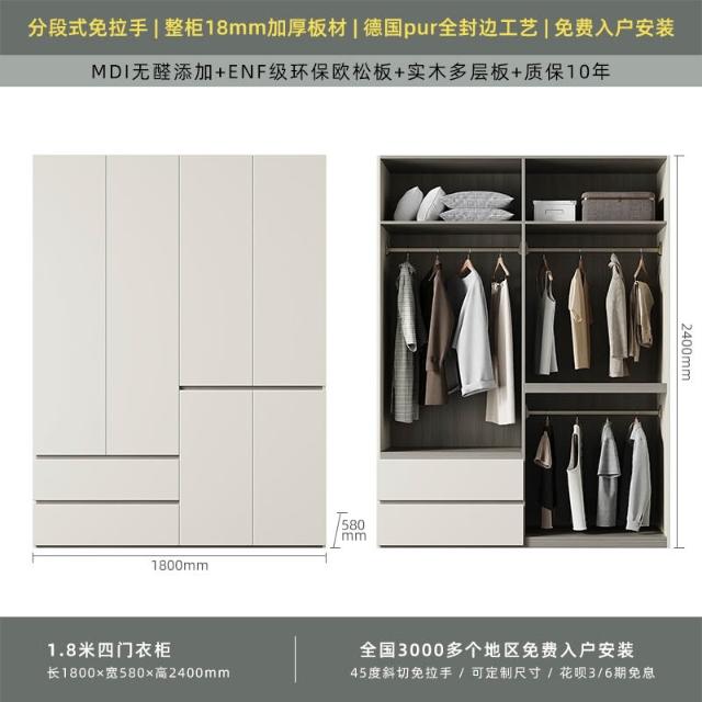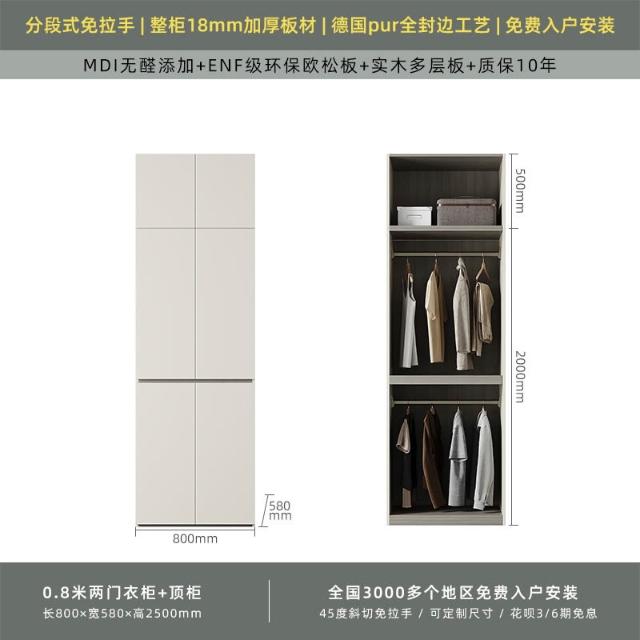 分段式衣櫃家用臥室奶油風一門到頂免拉手2024新款實木多層板衣櫥