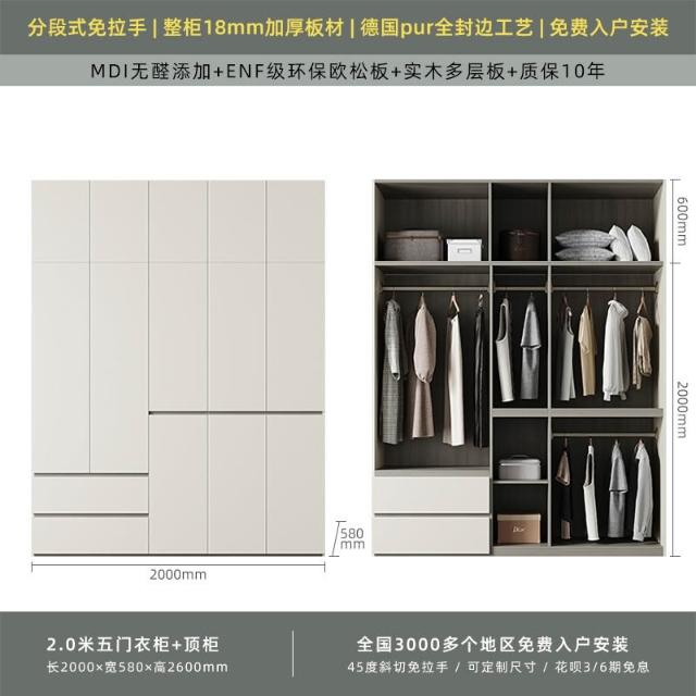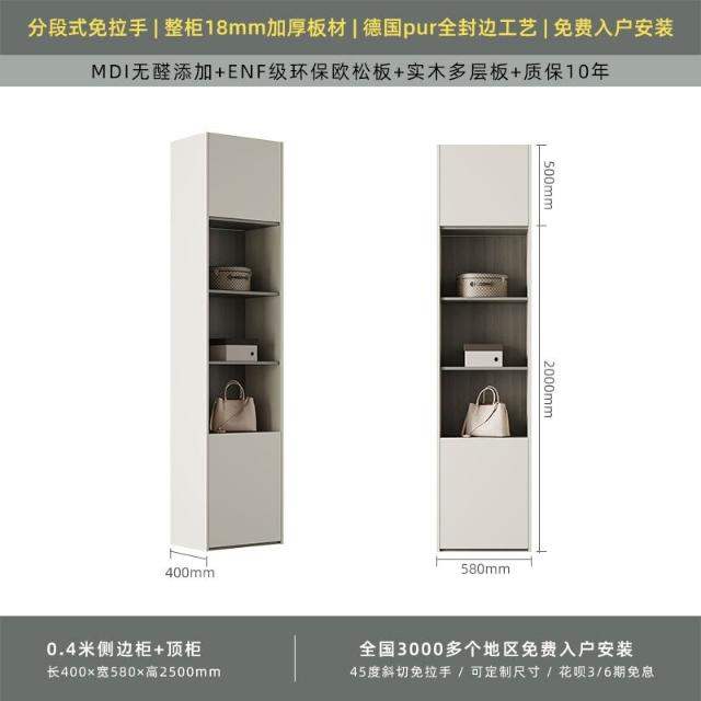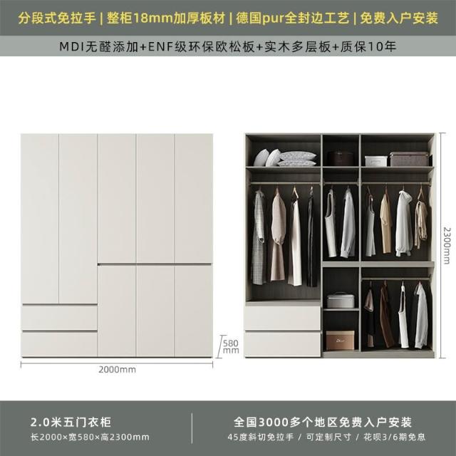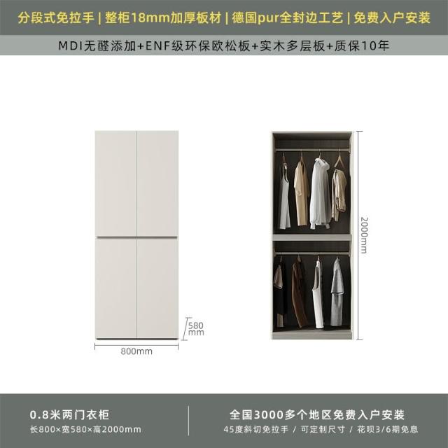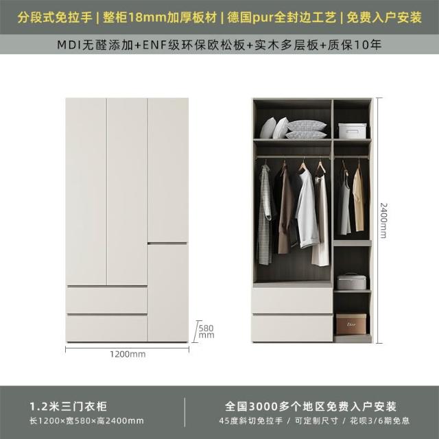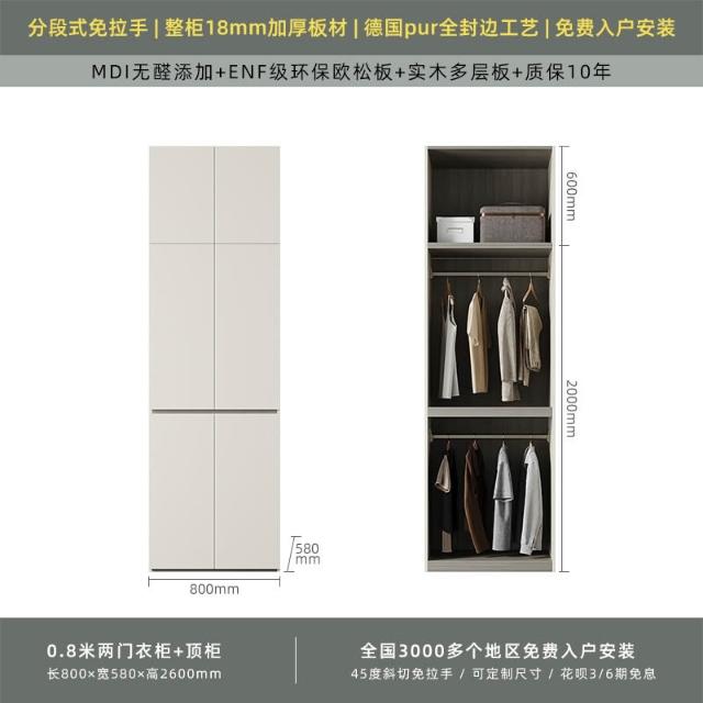 分段式衣櫃家用臥室奶油風一門到頂免拉手2024新款實木多層板衣櫥