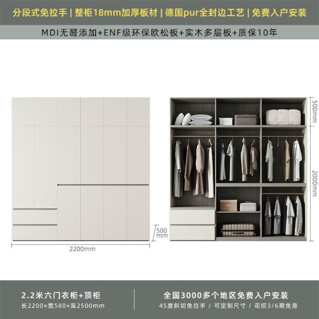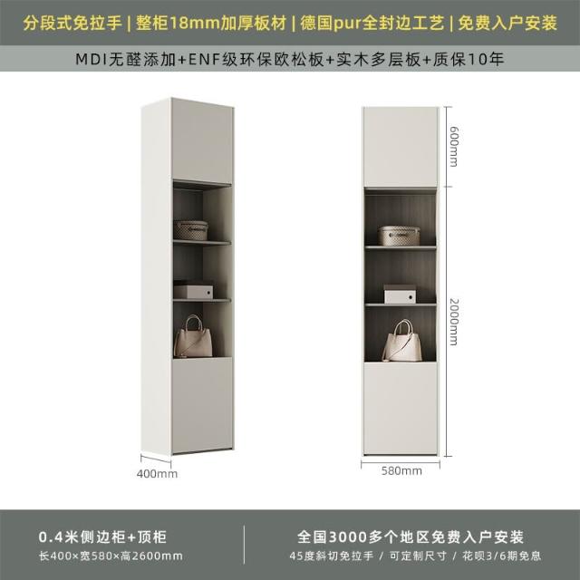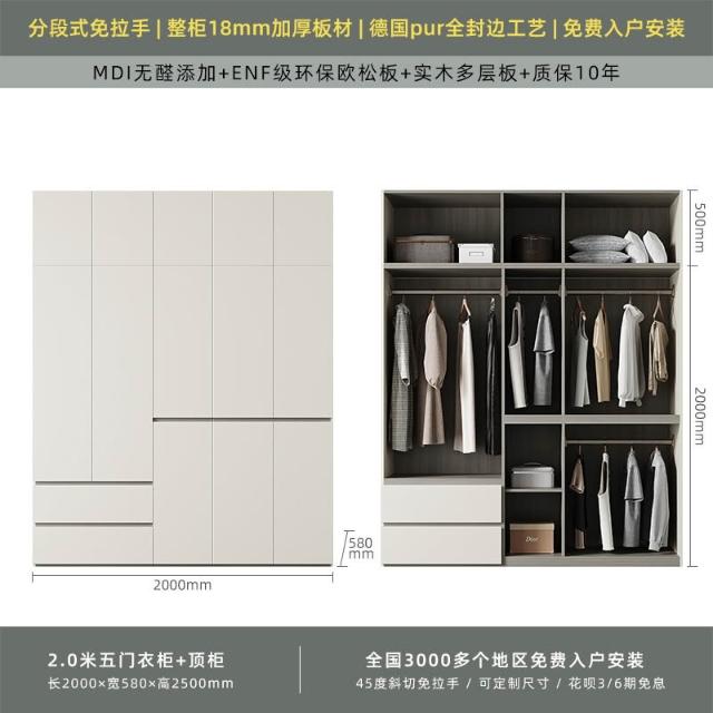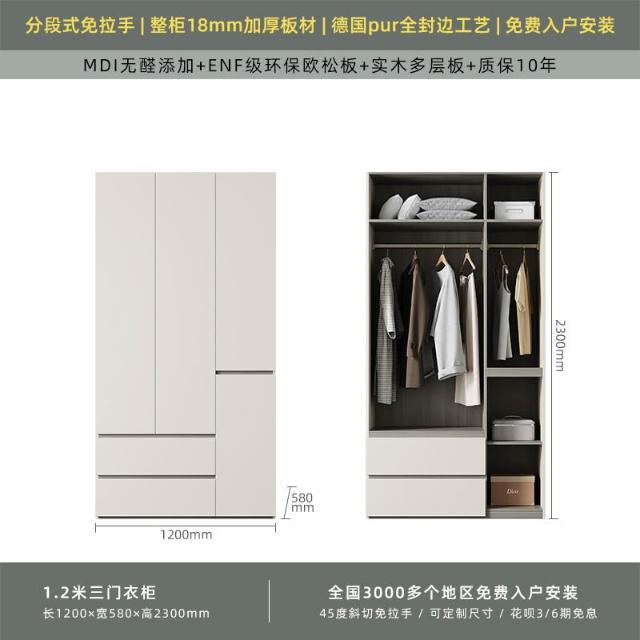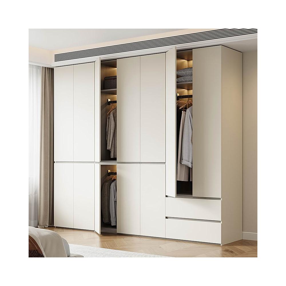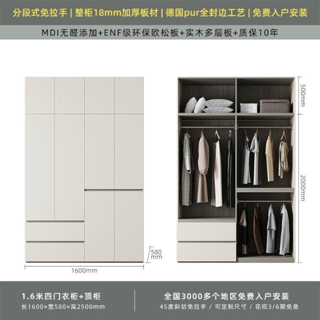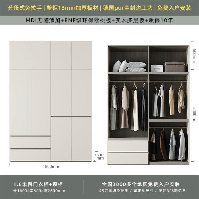 分段式衣櫃家用臥室奶油風一門到頂免拉手2024新款實木多層板衣櫥