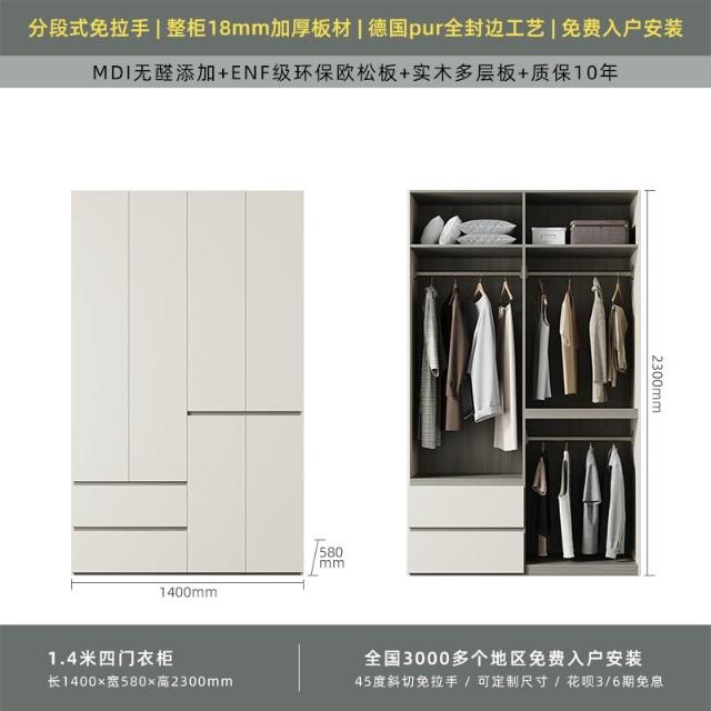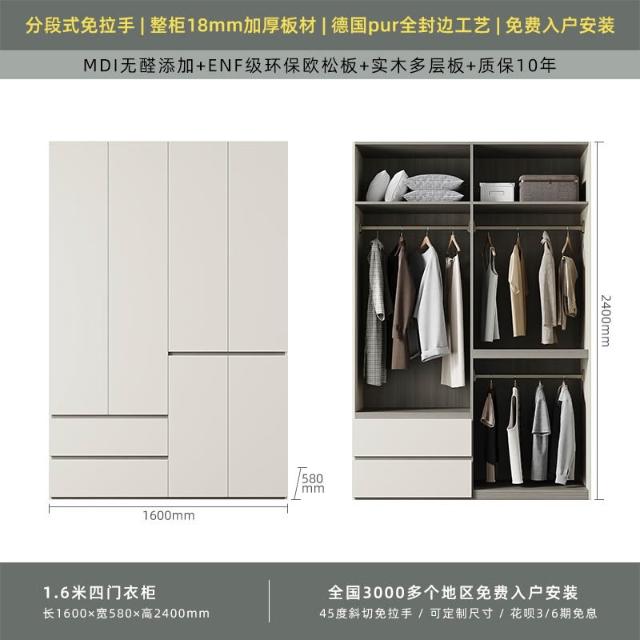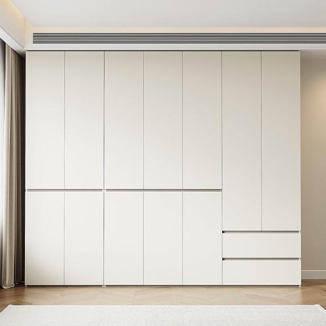 分段式衣櫃家用臥室奶油風一門到頂免拉手2024新款實木多層板衣櫥