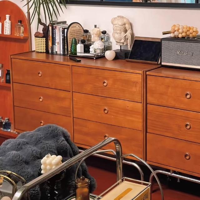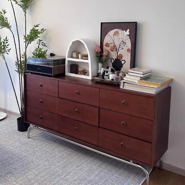 嚴選中古風實木九鬥櫃臥室床尾收納抽屜置物櫃子法式復古儲物邊櫃