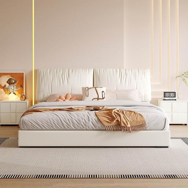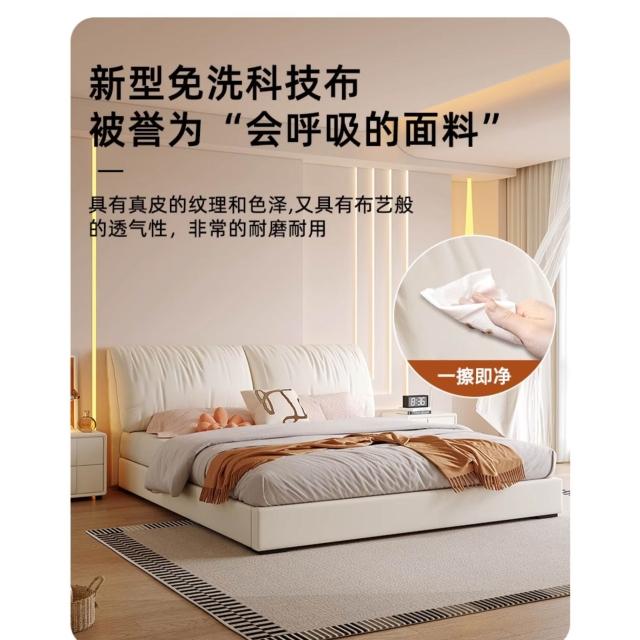 奶油風大象耳朵1.8米雙人床科技布氣壓儲物床現代簡約1.5米單人床