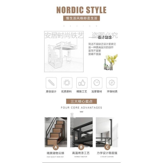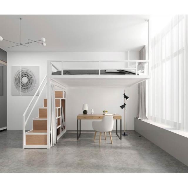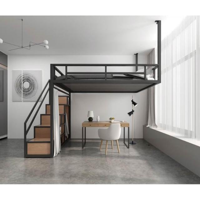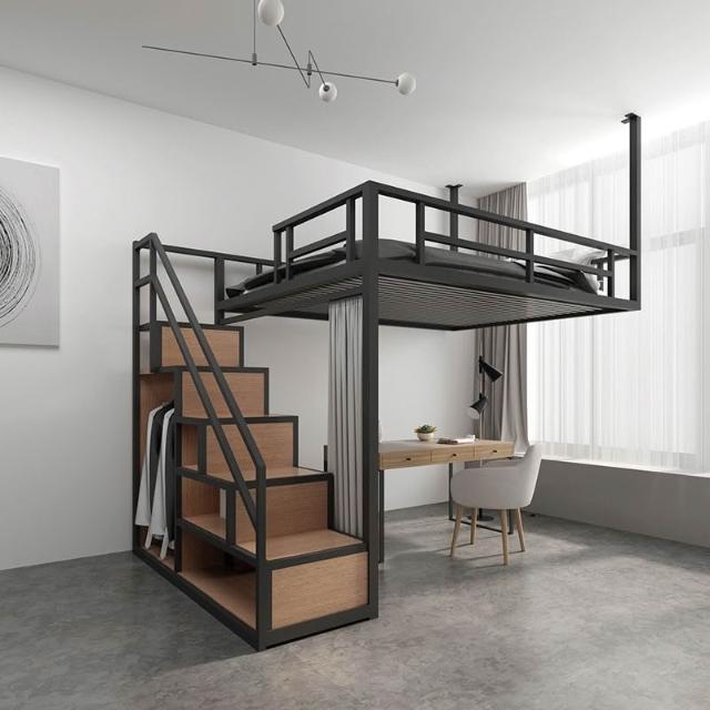 現代小戶型樓閣吊床多功能懸掛式鐵藝高架床公寓省空間鐵床架簡約
